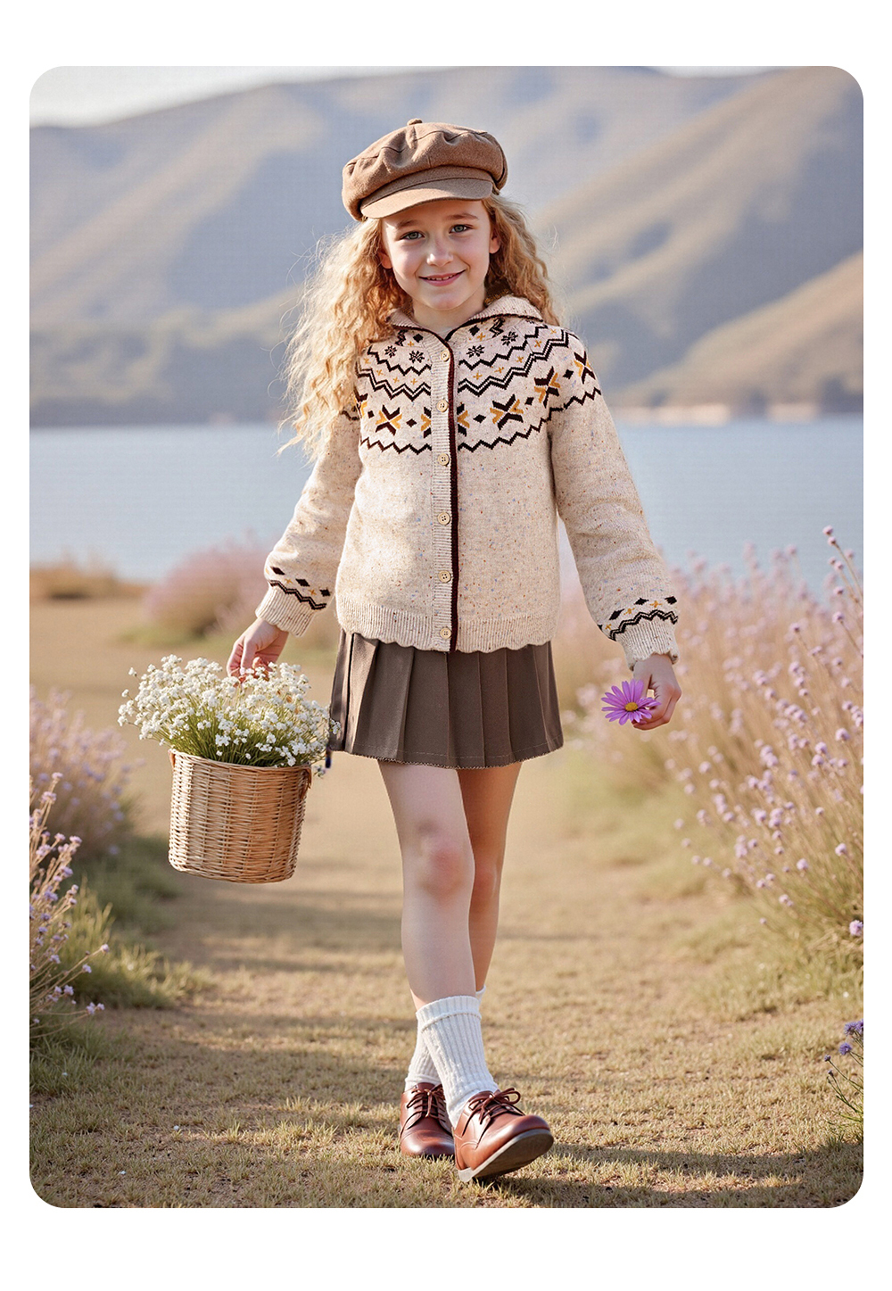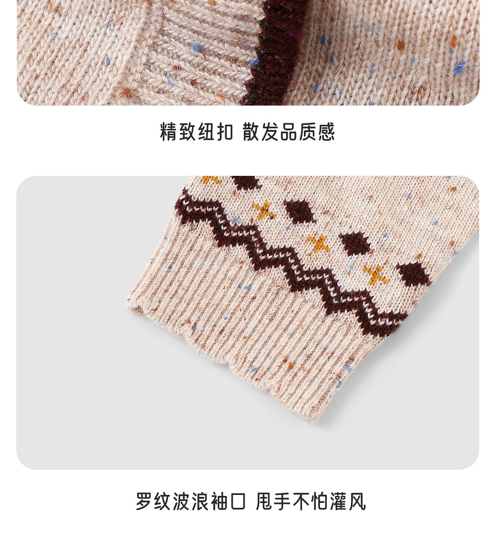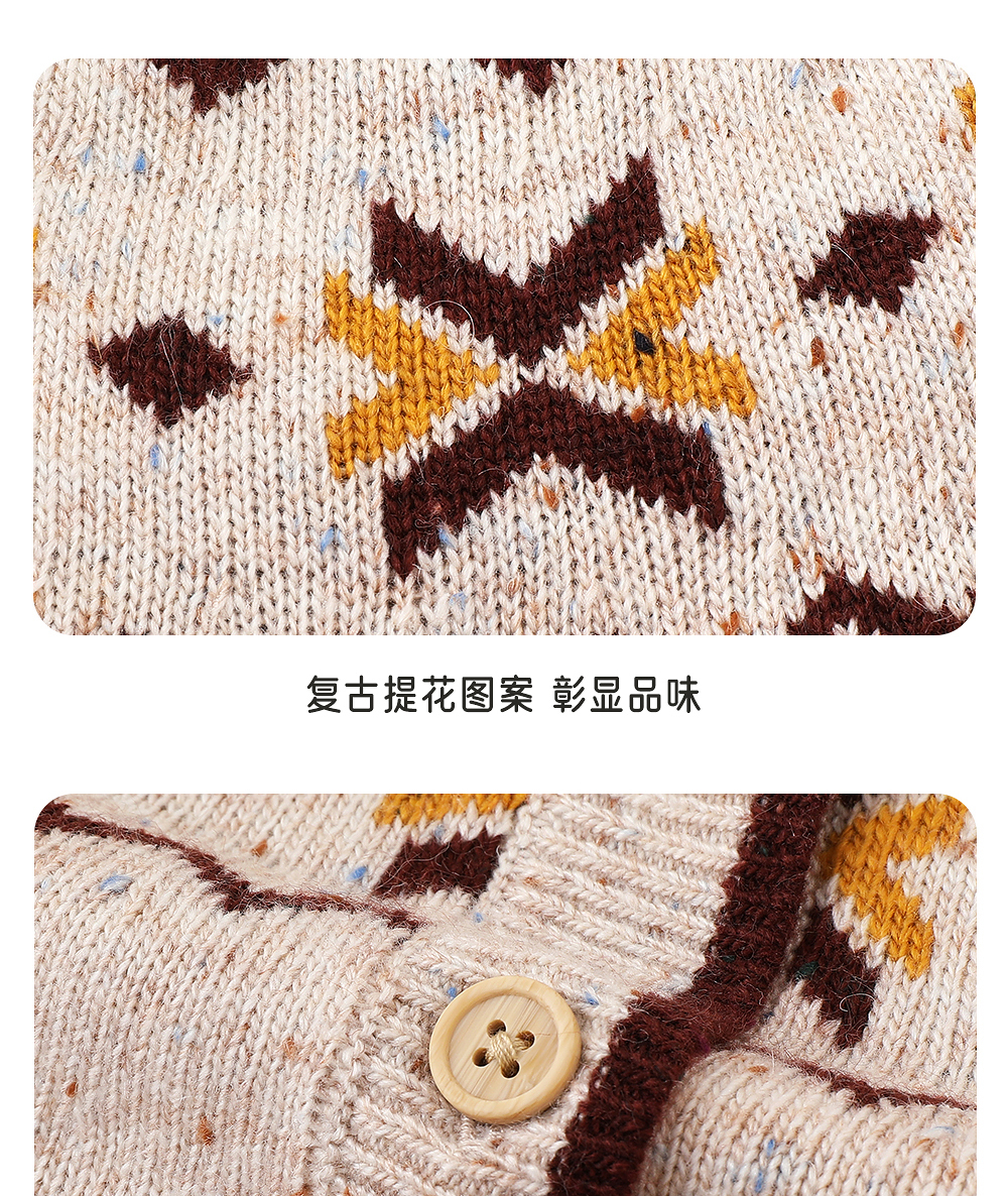 英氏儿童薄外套长袖女童针织费尔岛外套开衫春秋季百搭中大童连帽羊毛衫
