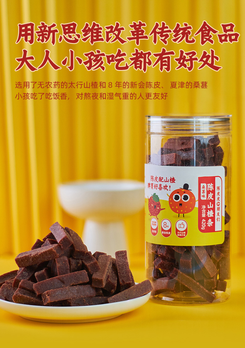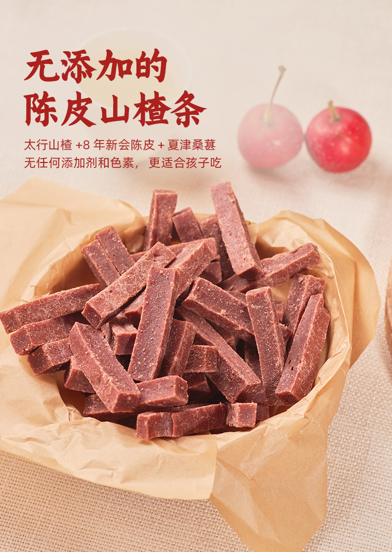 无添加剂及色素、选用野生山楂添加陈皮、桑葚