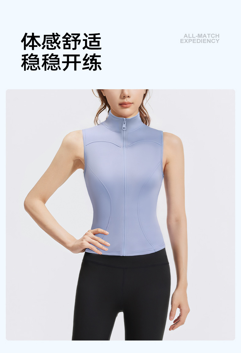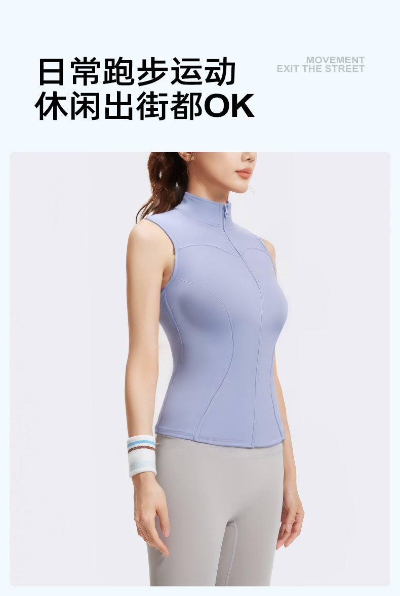 跃牌【瑜堂系列】新款立领无袖外套弹力修身透气显瘦运动外套JYMW041