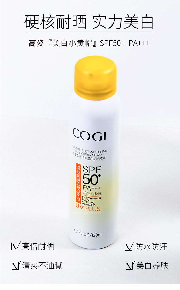 120ml高姿多效倍护美白防晒喷雾 美白清爽不油腻小黄帽