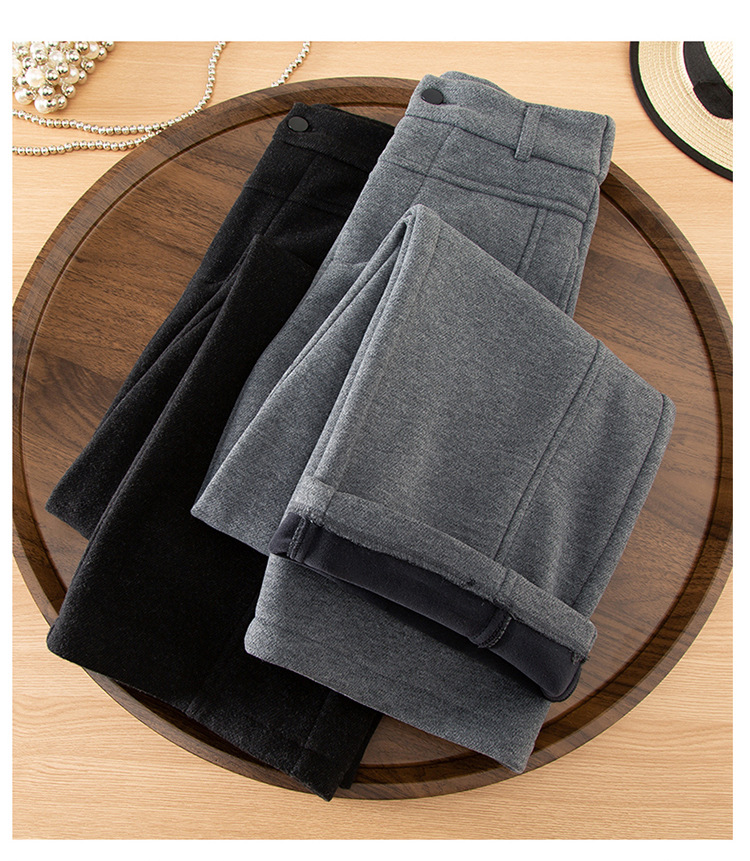 HSS 8578加绒保暖毛呢阔腿裤显瘦爆款休闲裤 商品图4