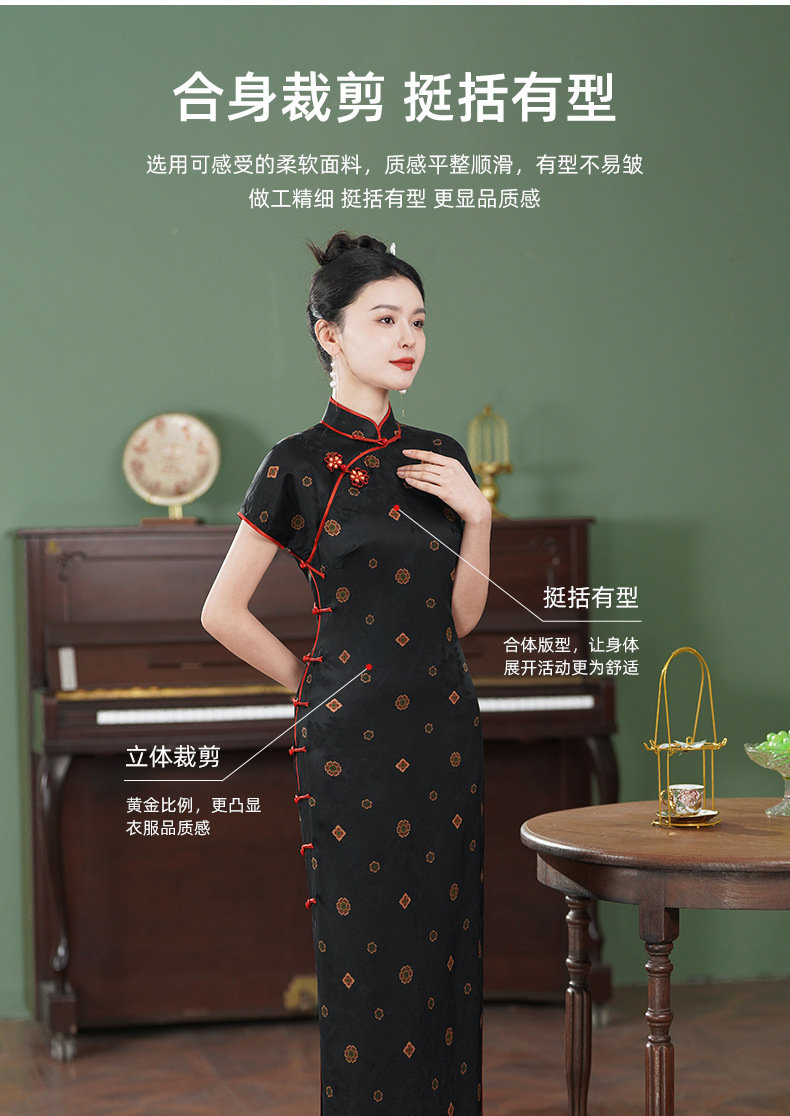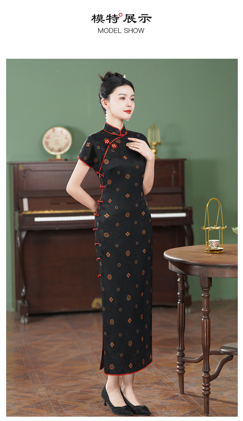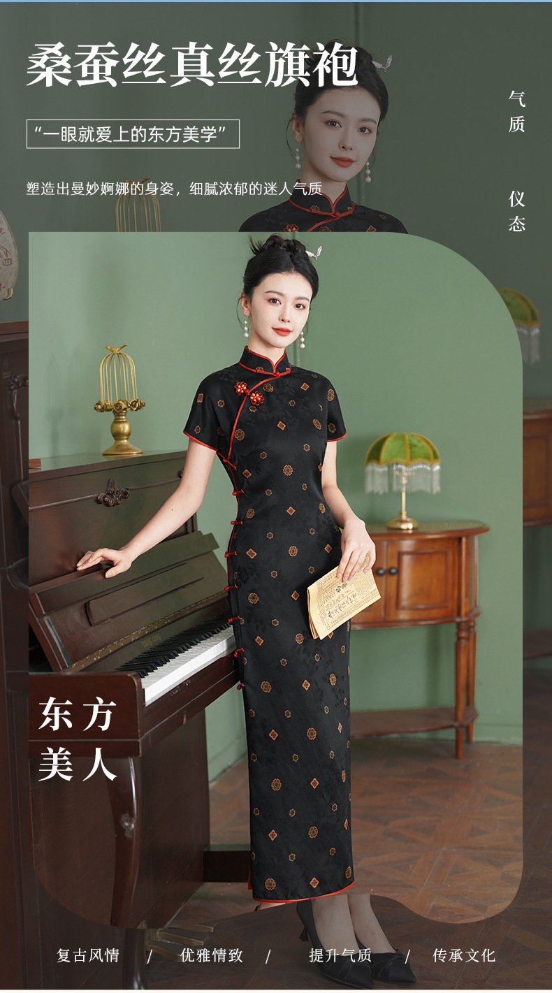 TZRY-3139故宫红重磅香云纱真丝桑蚕丝古法旗袍手工高端大气复古优雅日常旗袍裙