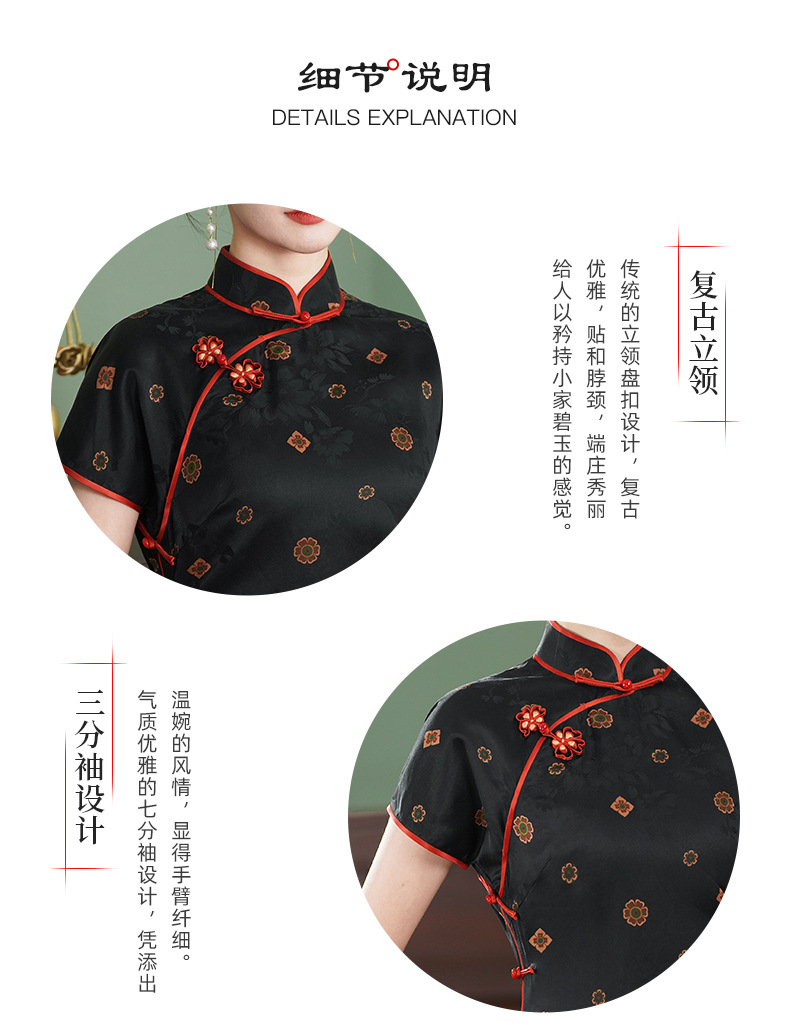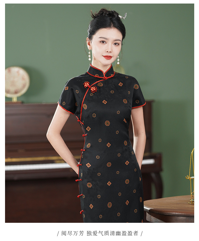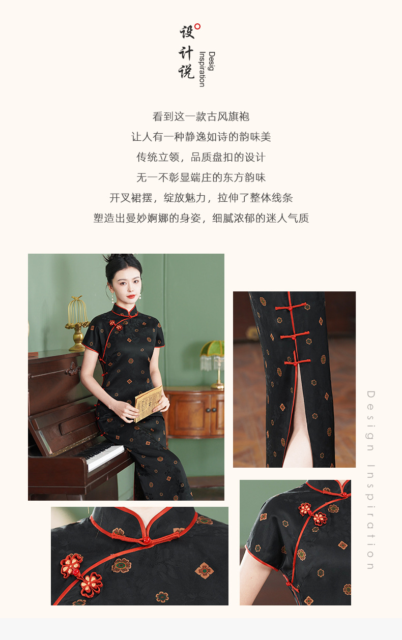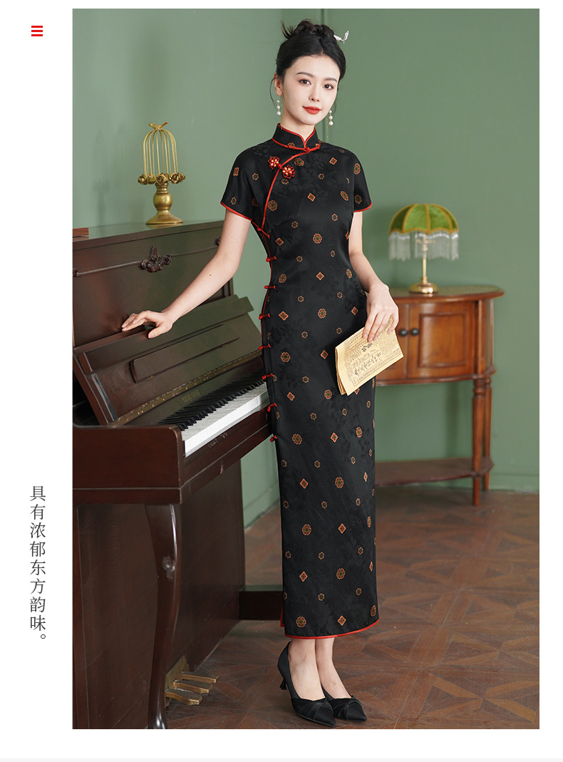 TZRY-3139故宫红重磅香云纱真丝桑蚕丝古法旗袍手工高端大气复古优雅日常旗袍裙