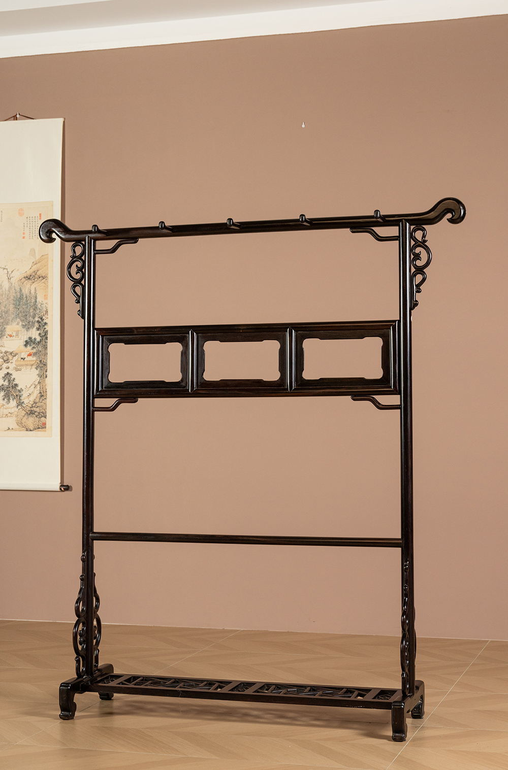 清 红木券口靠背玫瑰椅成套(两椅一几)