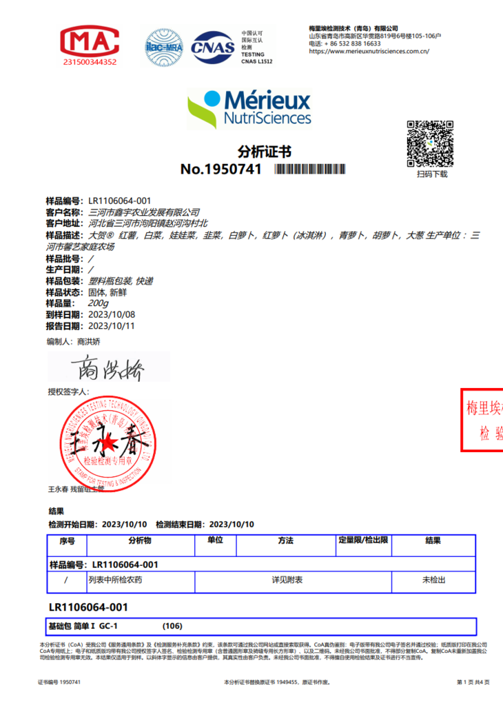 农场2007年就通过国家有机食品认证,一直从2007年-2015年,连续9年通过有机认证,(2015年之后由于经营资金问题,没有再做有机认证,但一直坚持有机标准,每年的种植的蔬菜还是会做农残检测)。