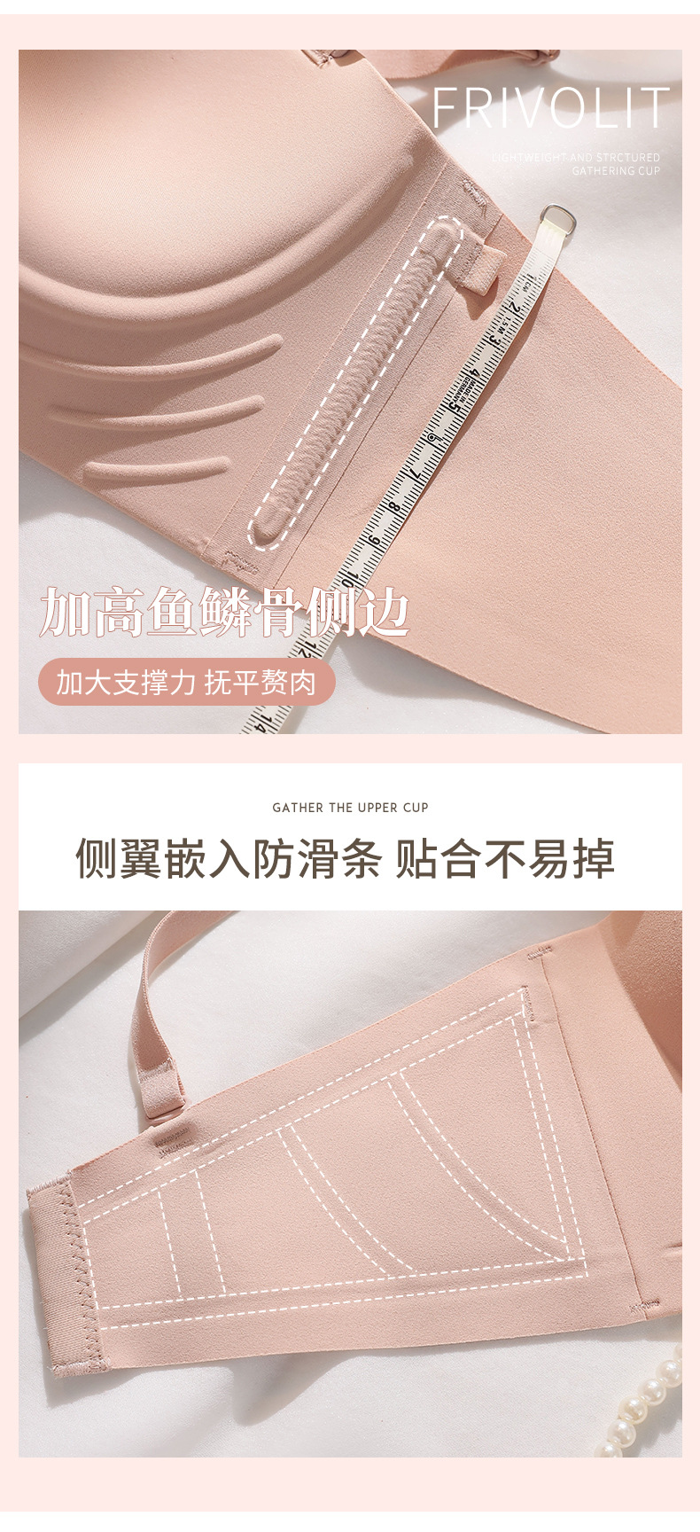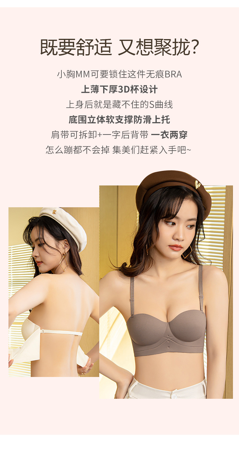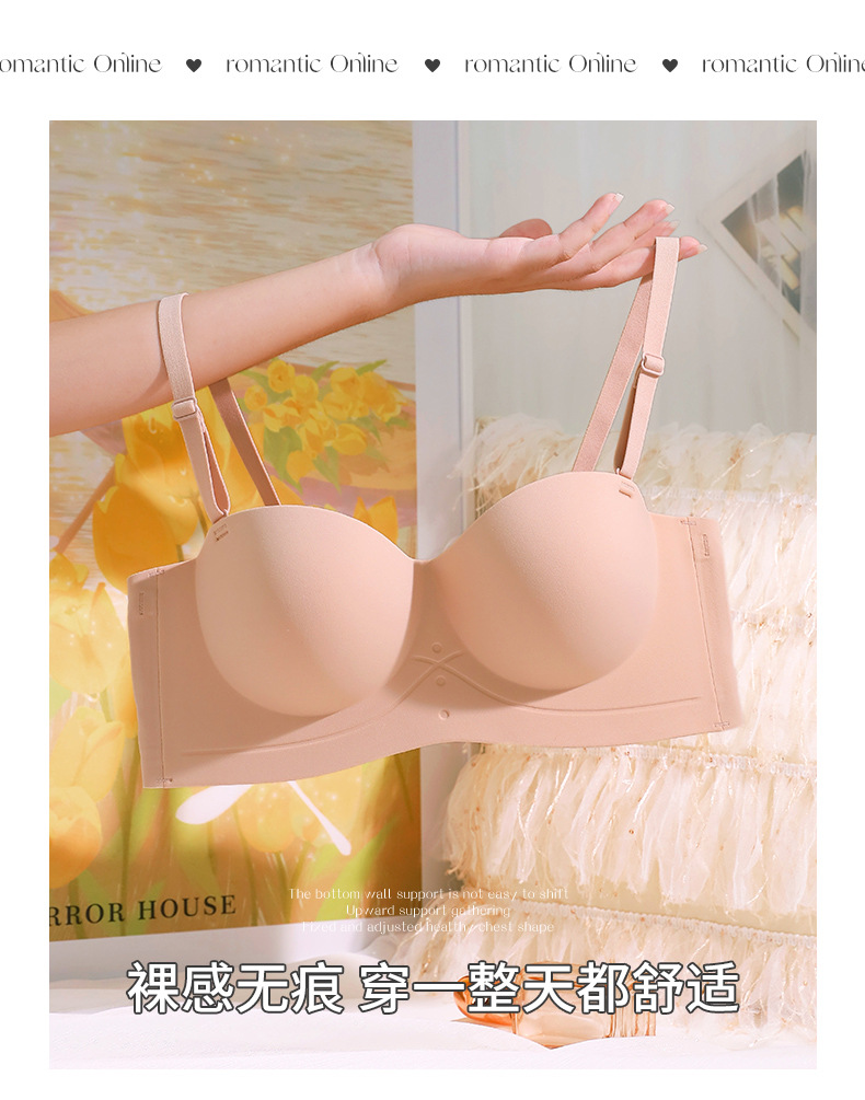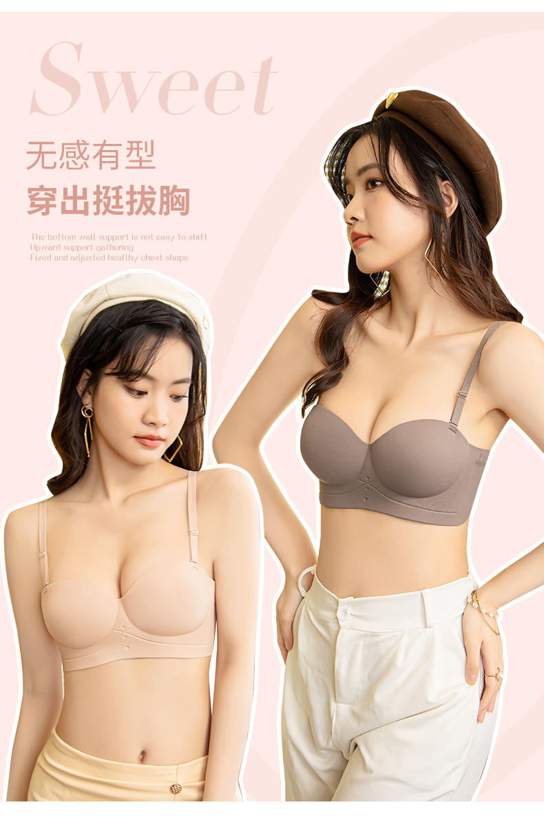 NJR8244半杯内衣女反重力小胸显大防下垂无痕无钢圈收副乳无肩带文胸