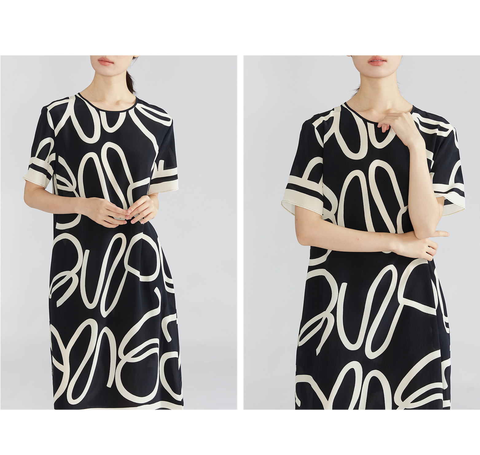丁摩 真丝短袖真丝连衣裙桑蚕丝双绉通勤宽松显瘦夏季女裙子夏款5ZF-052