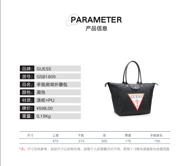 GUESS盖斯 经典时尚男女士手提包逛街包包旅行肩背包便携折叠包