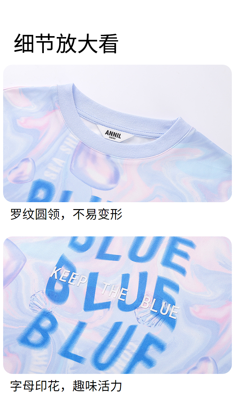 女童SORONA圆领短袖针织衫夏季新款安奈儿童装EG621705
