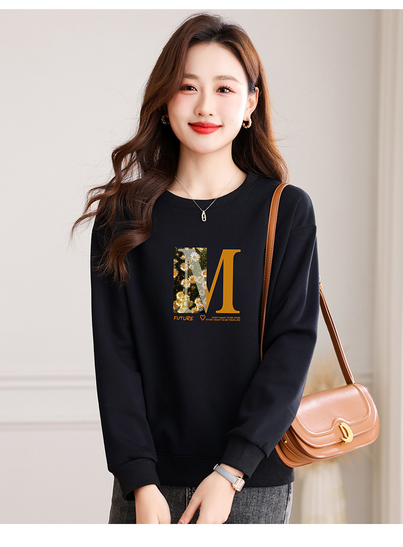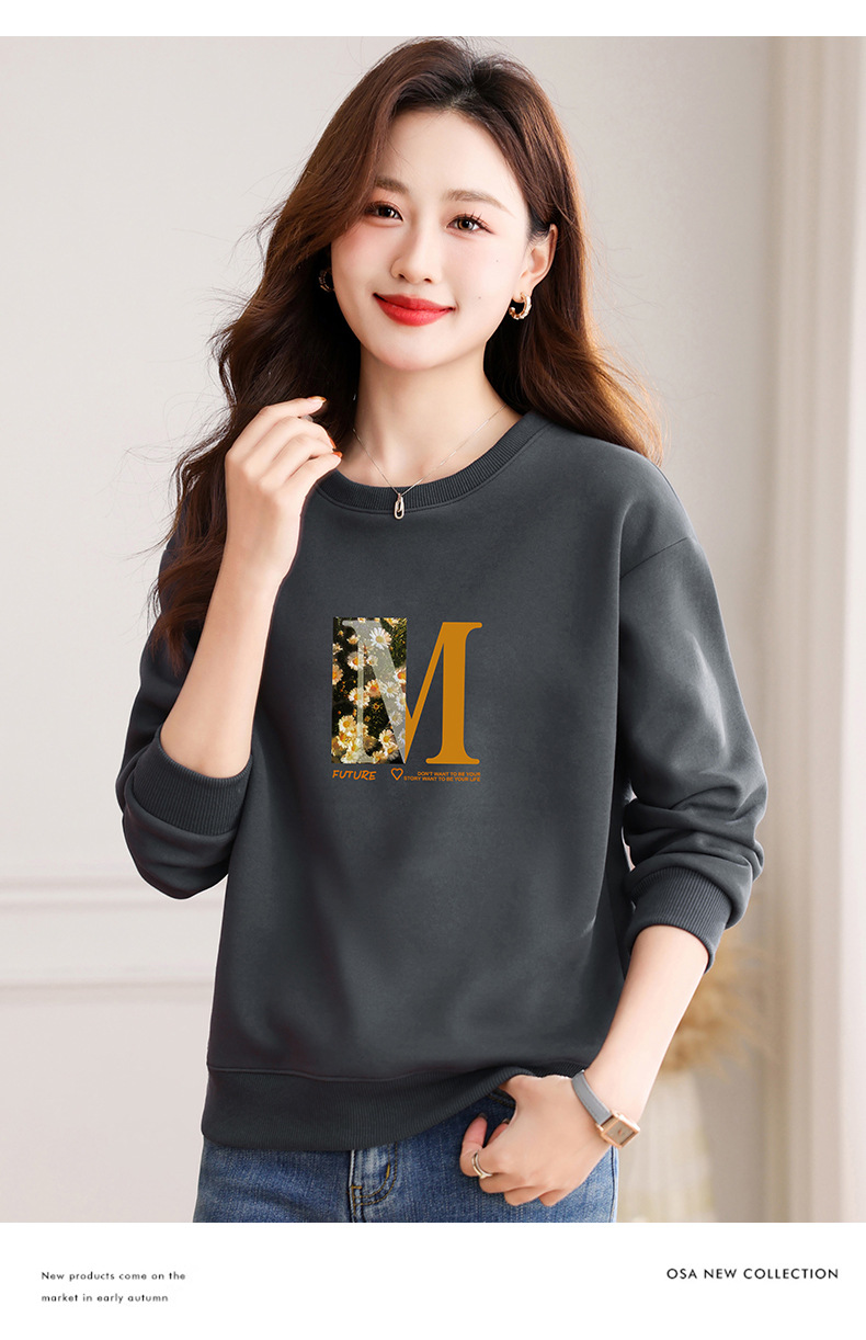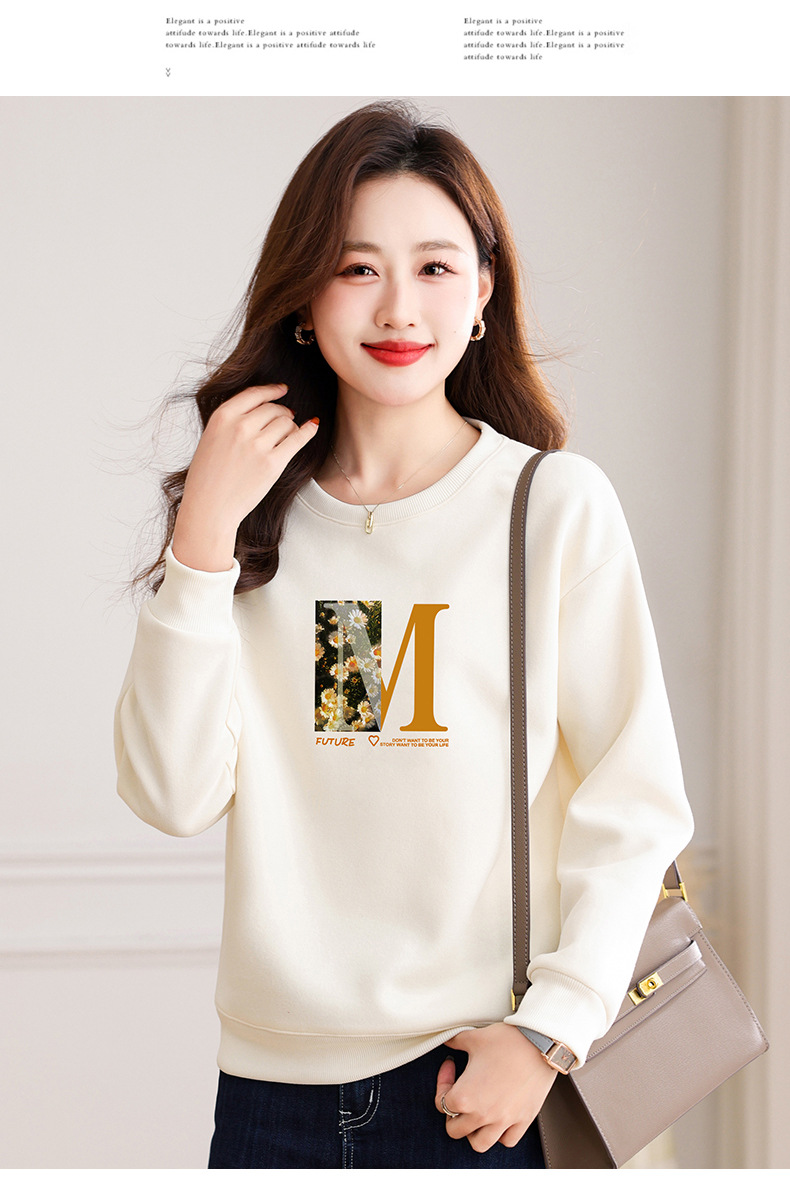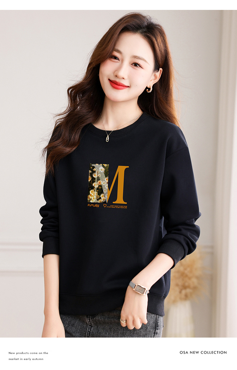 圆领印花卫衣女,春季新款时尚气质春装百搭休闲显瘦长袖上衣QB-LL89083