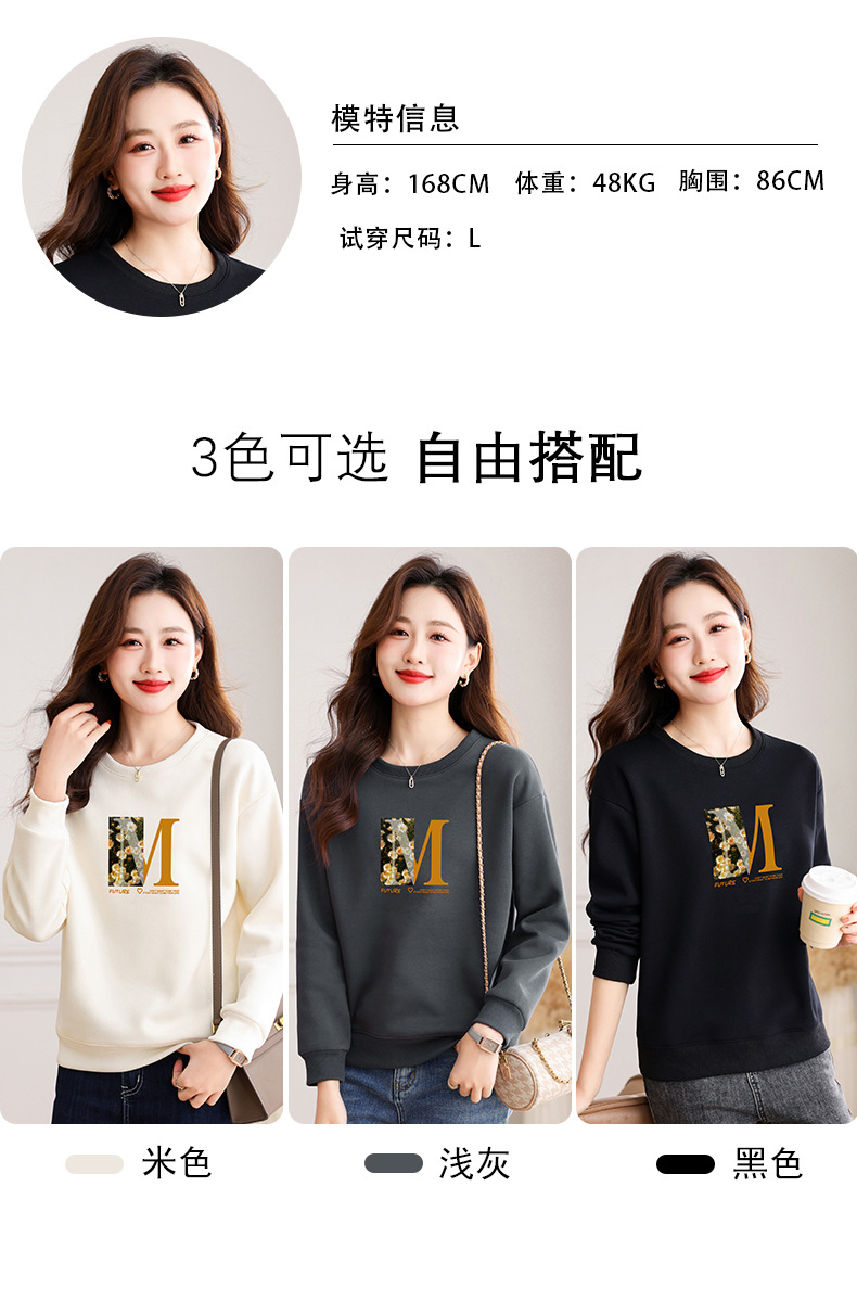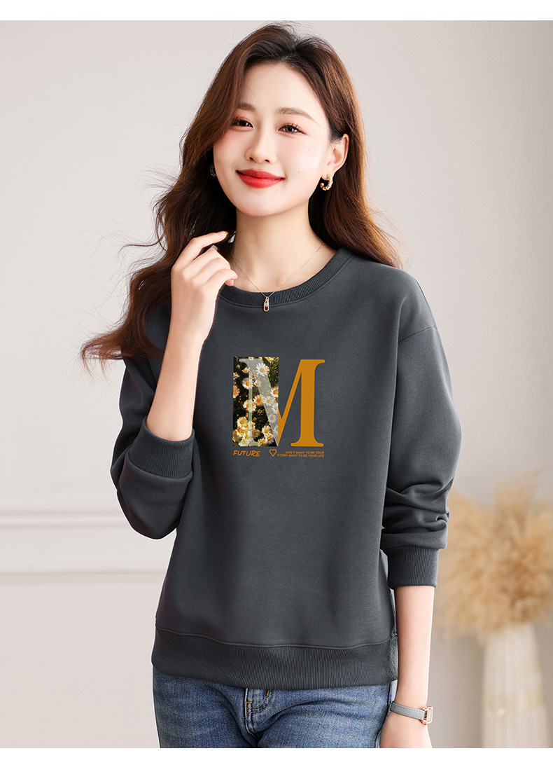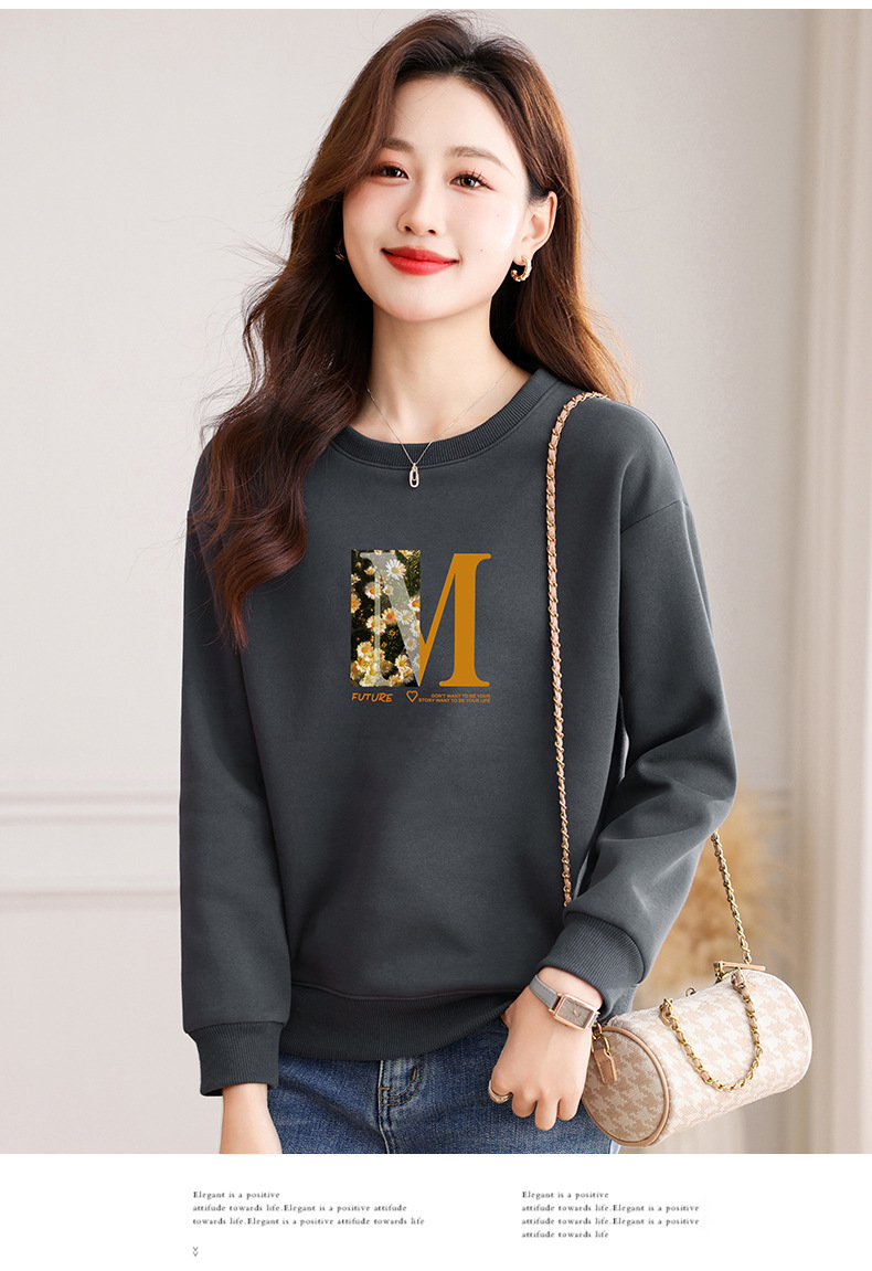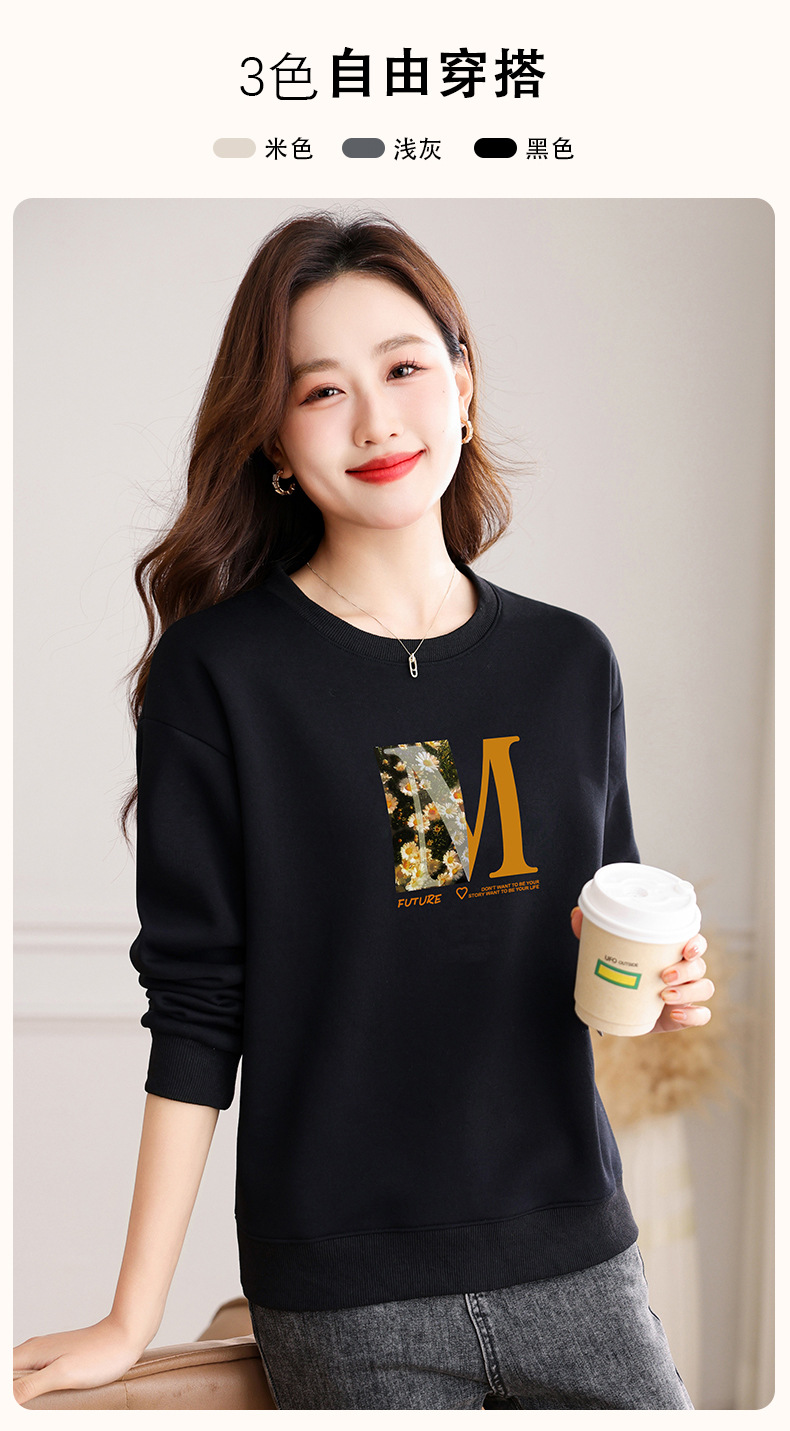 圆领印花卫衣女,春季新款时尚气质春装百搭休闲显瘦长袖上衣QB-LL89083