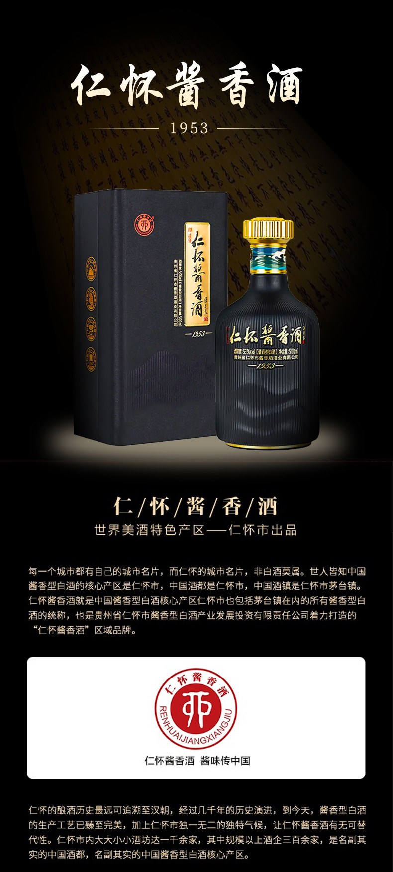 【推荐】贵州仁怀酱香酒(1953) 酱香型白酒53度 500ml*6整箱装