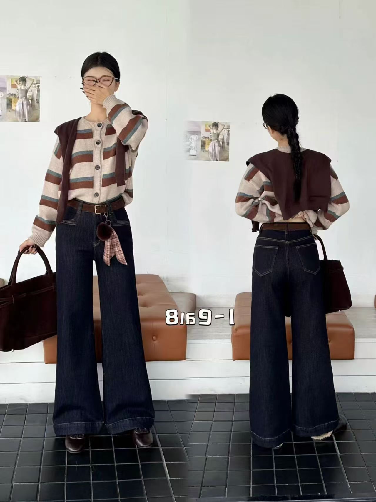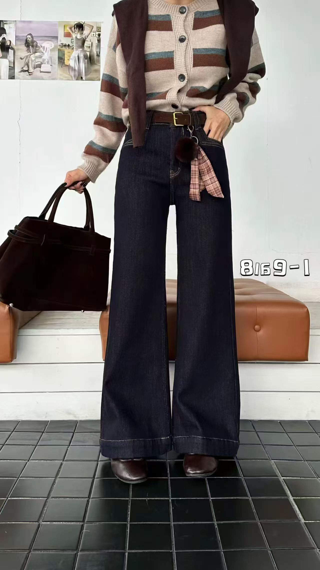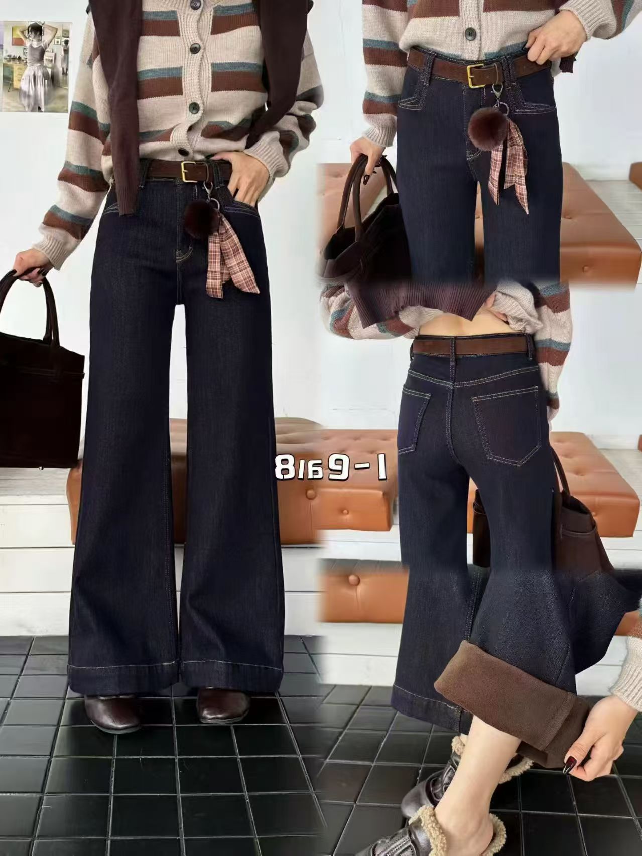 🔥🔥🔥【爆款牛仔】加厚密密绒~筒喇裤!8169不沾腿微喇裤加绒厚款阔腿裤-喜出