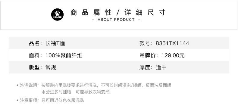 卡尔美秋冬新款男士休闲运动长袖T恤