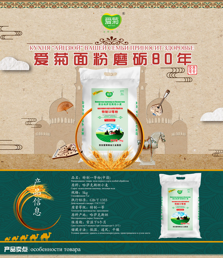 爱菊 哈萨克斯坦 中筋 面粉 5kg