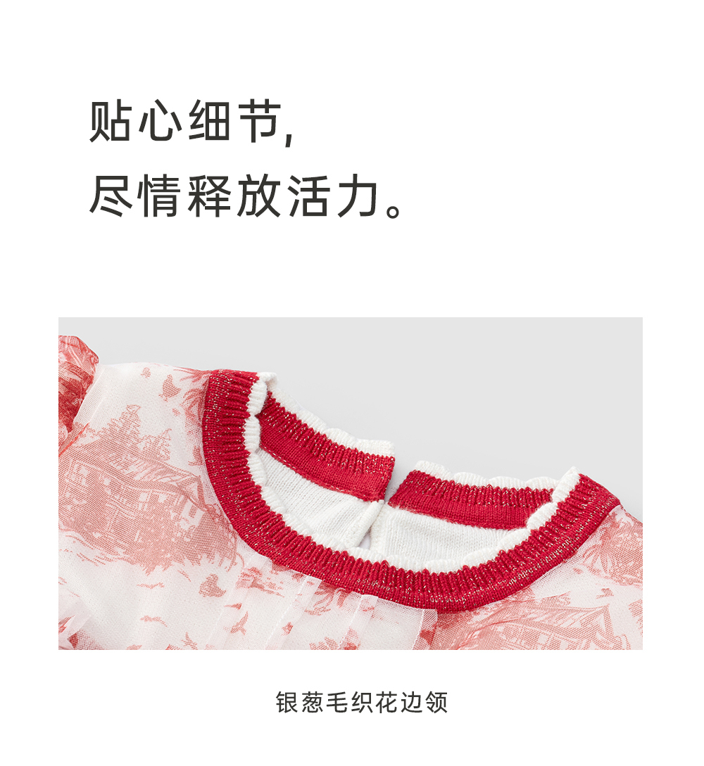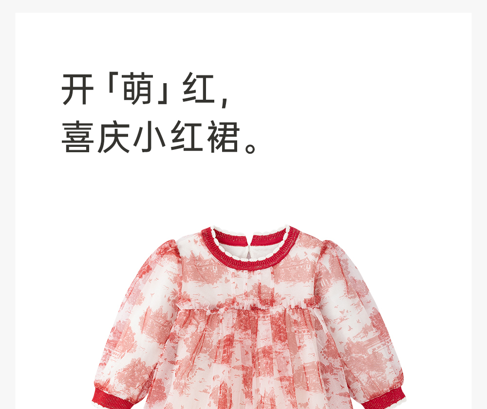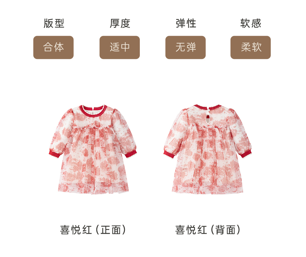 【商场同款】英氏女童秋冬连衣裙女宝宝长袖裙子红色秋冬款小宝宝裙子