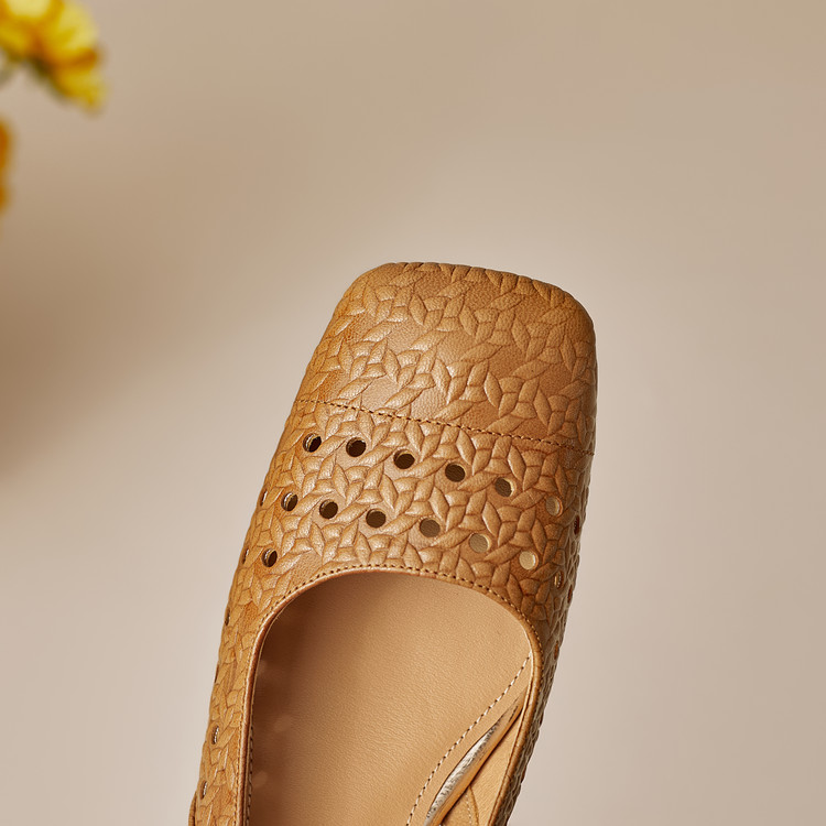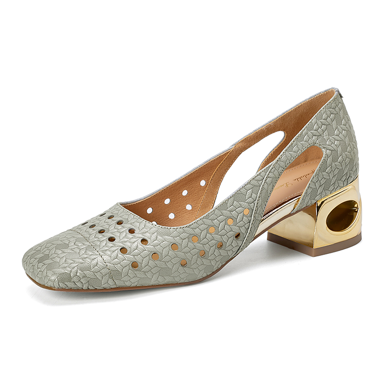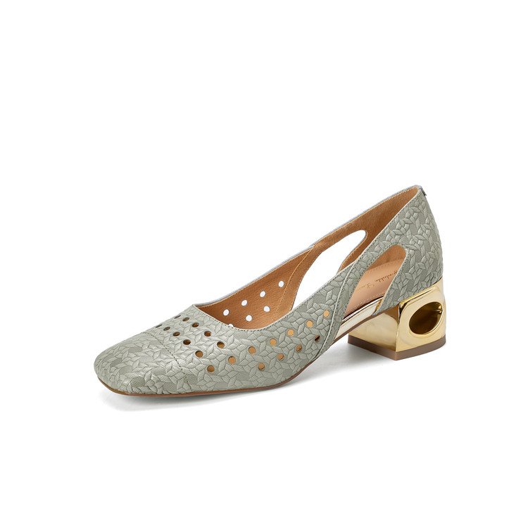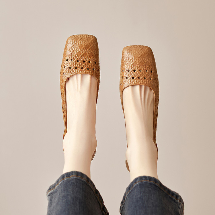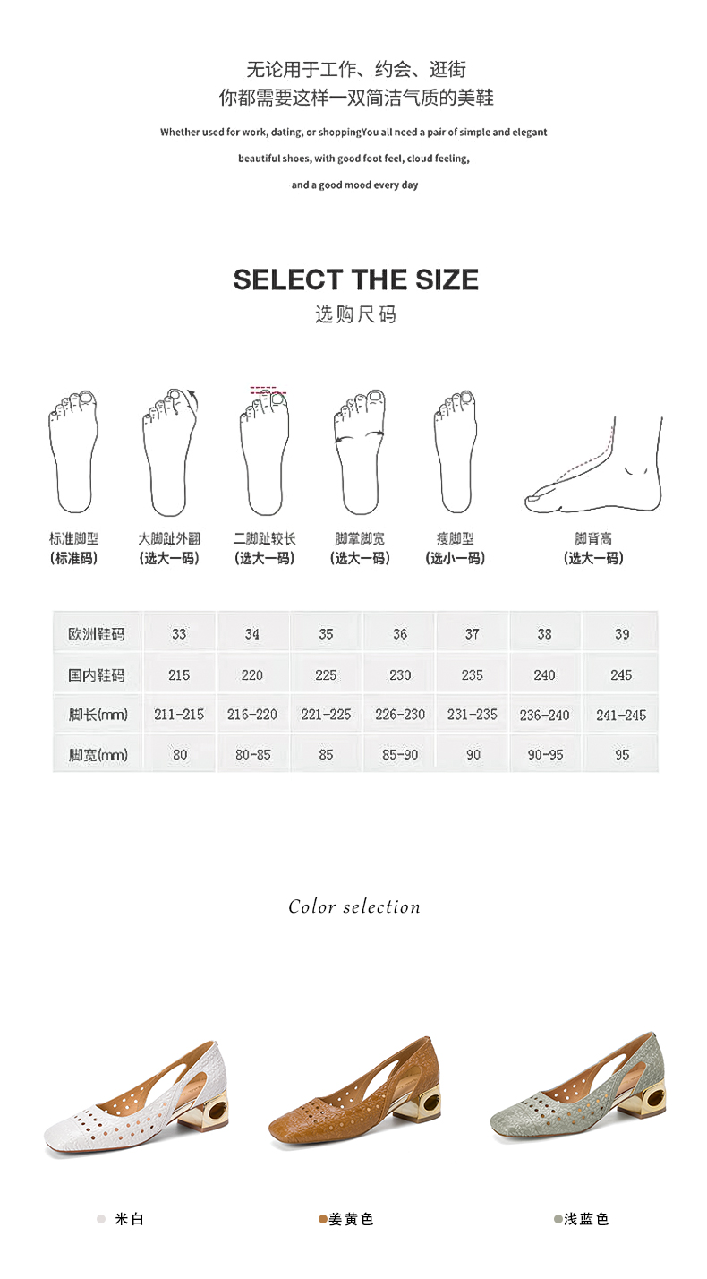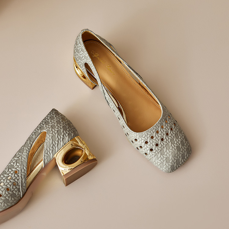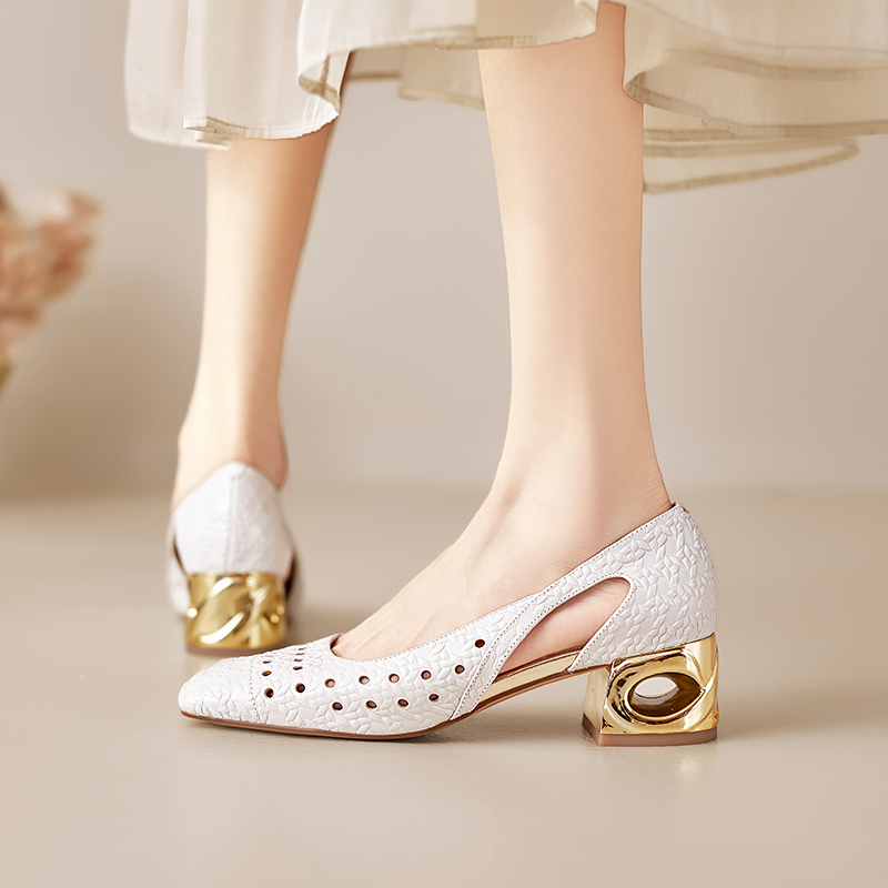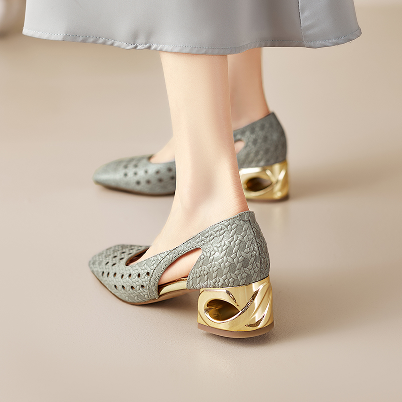 【预售5天】简约方头粗跟头层牛皮夏季浅口镂空真皮透气女鞋MBJR&6912