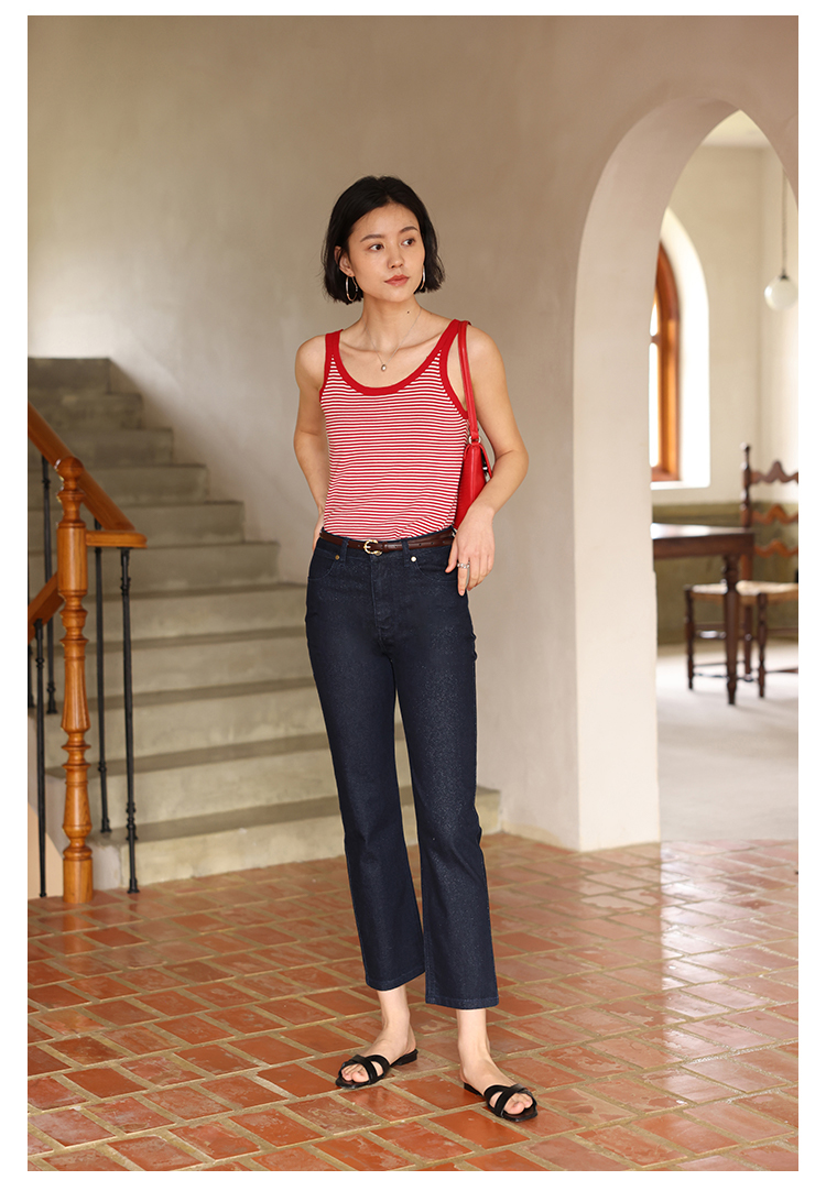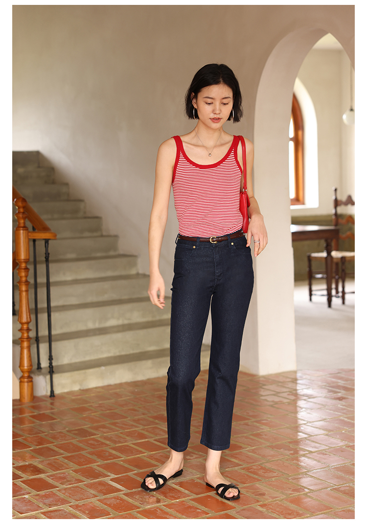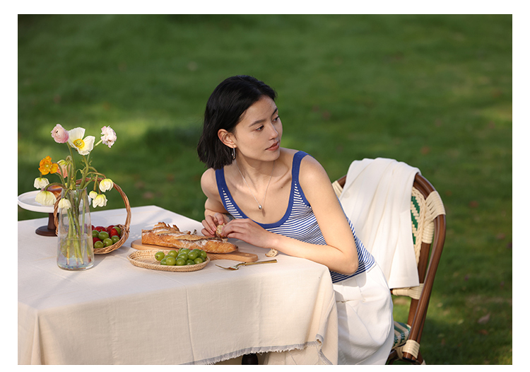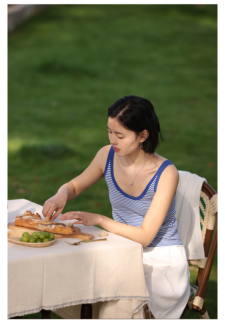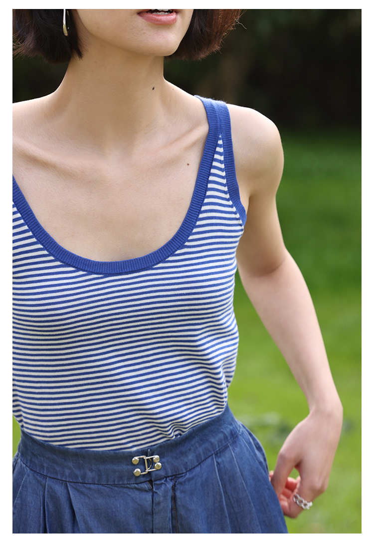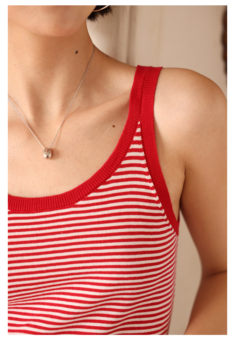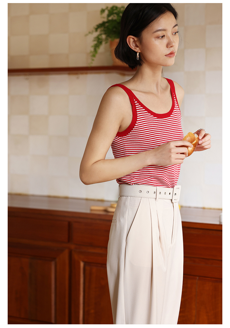 HeyDress撞色条纹吊带背心女夏季法式复古大圆领两穿短款坎肩上衣