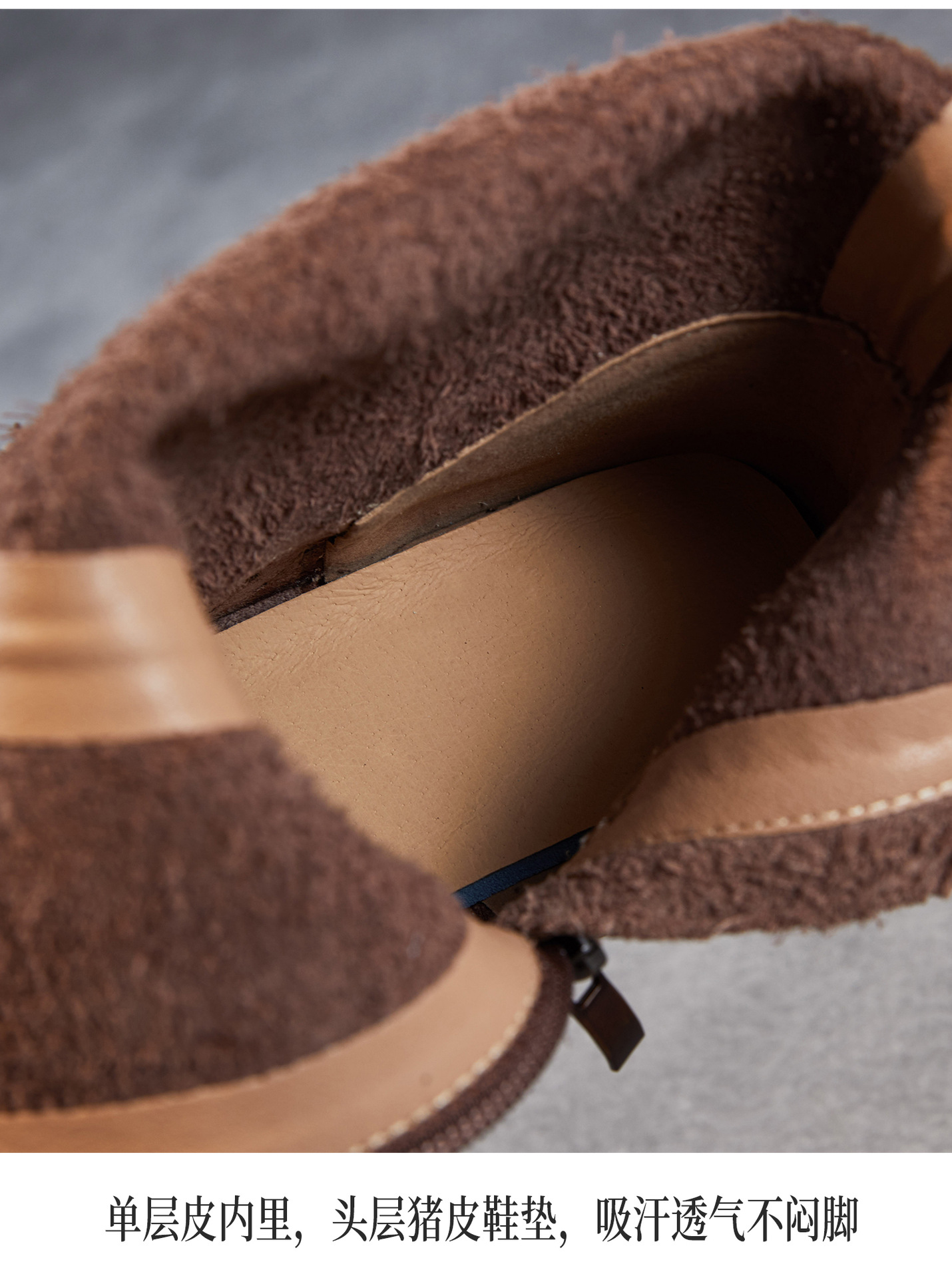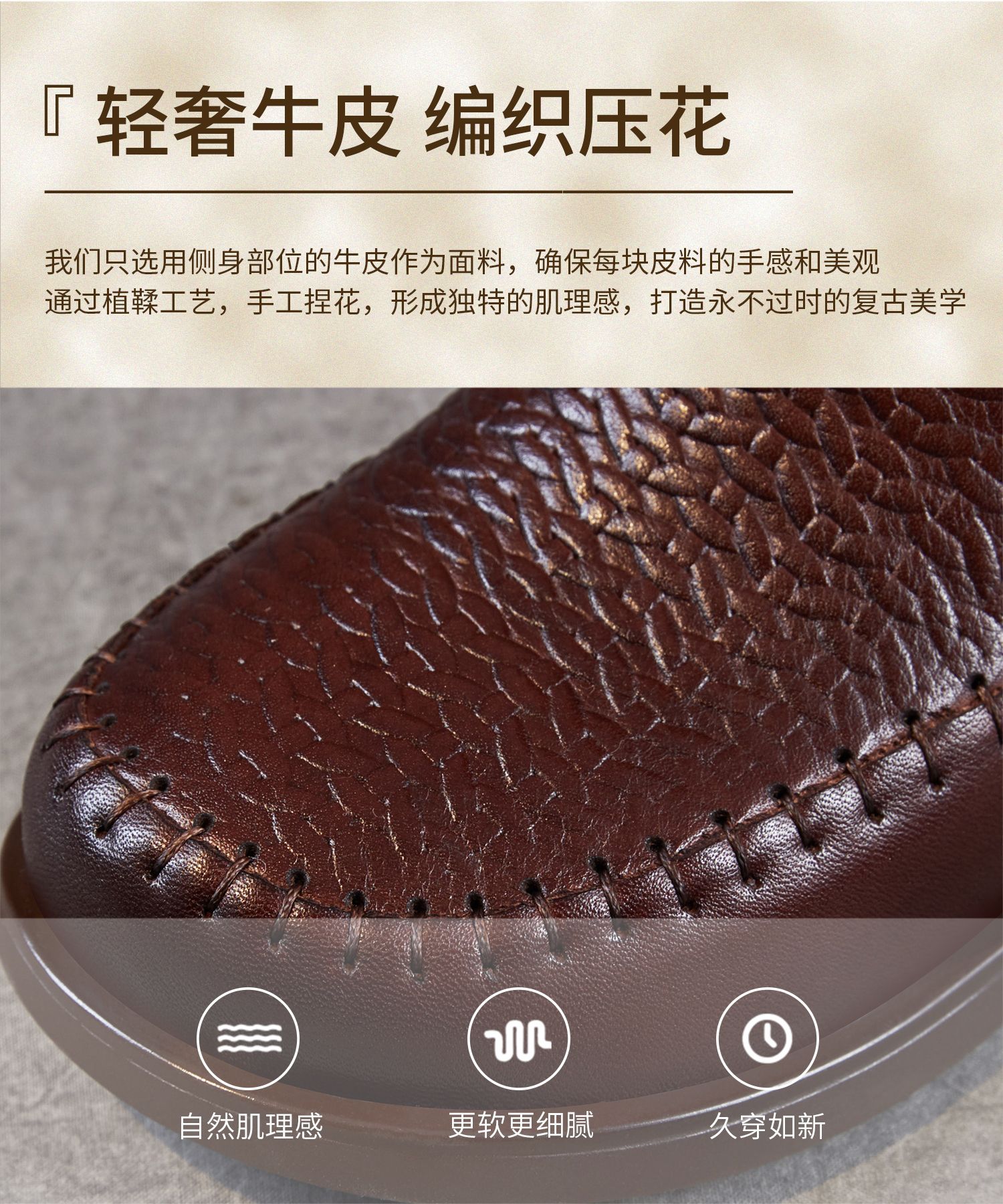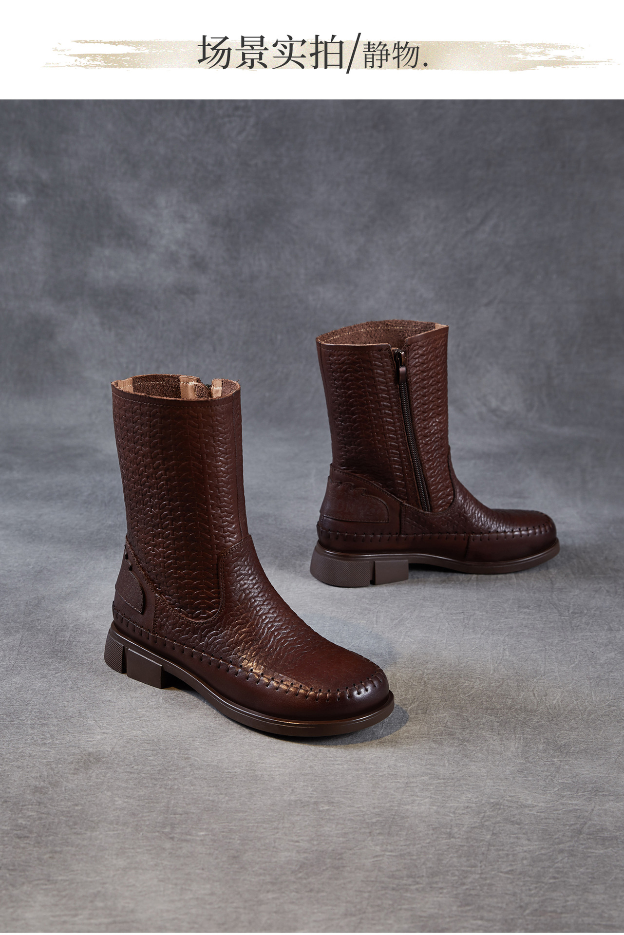 ZM 258679复古真皮压花缝制平跟软底骑士靴中筒靴 商品图4