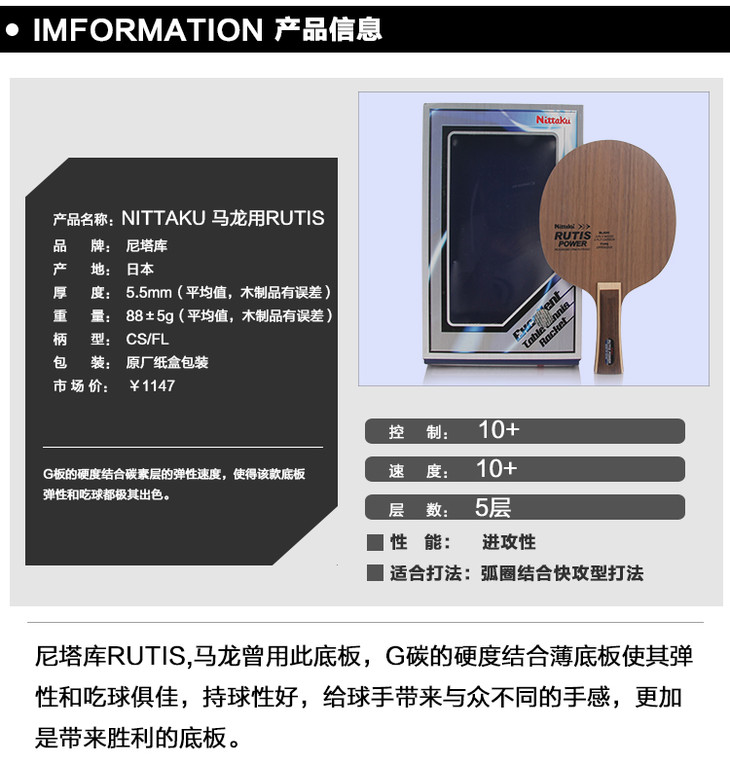 NITTAKU尼塔库Rutis / Power / Revo马龙曾用3木+2玻碳底板 正品