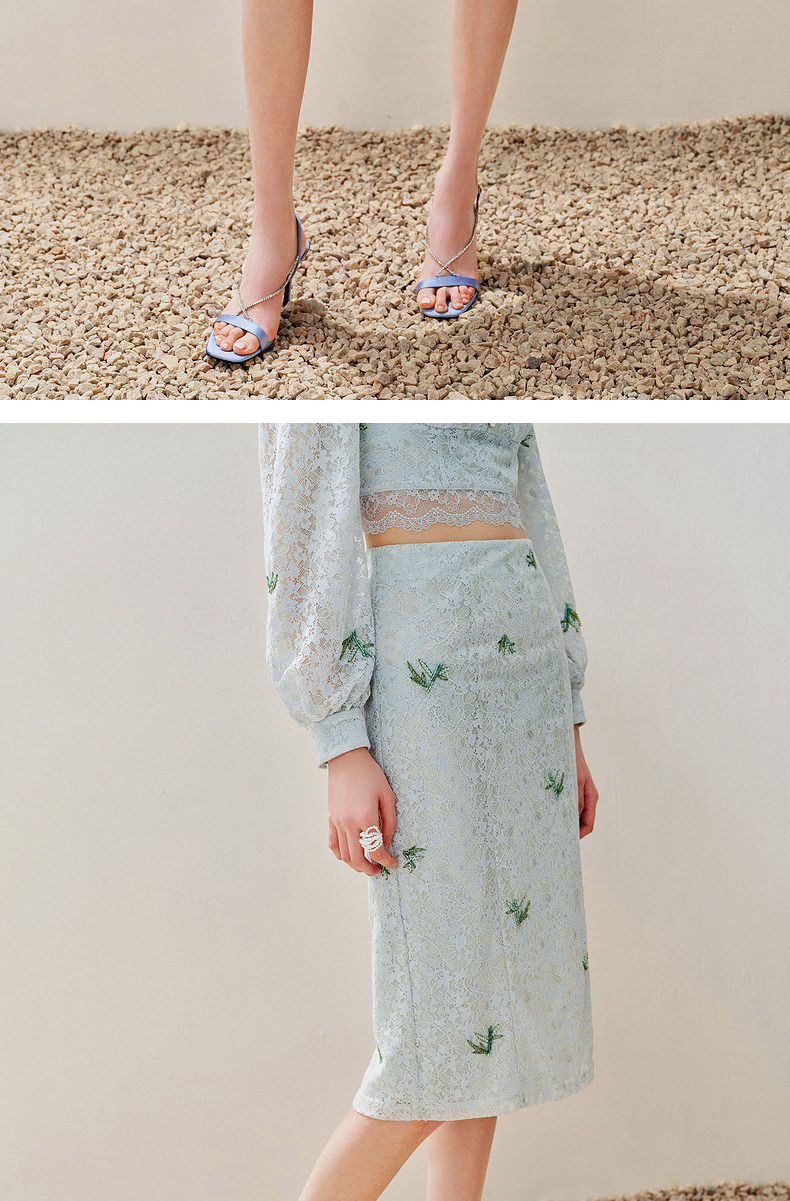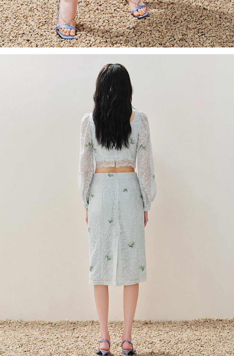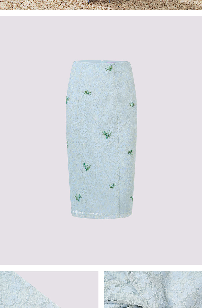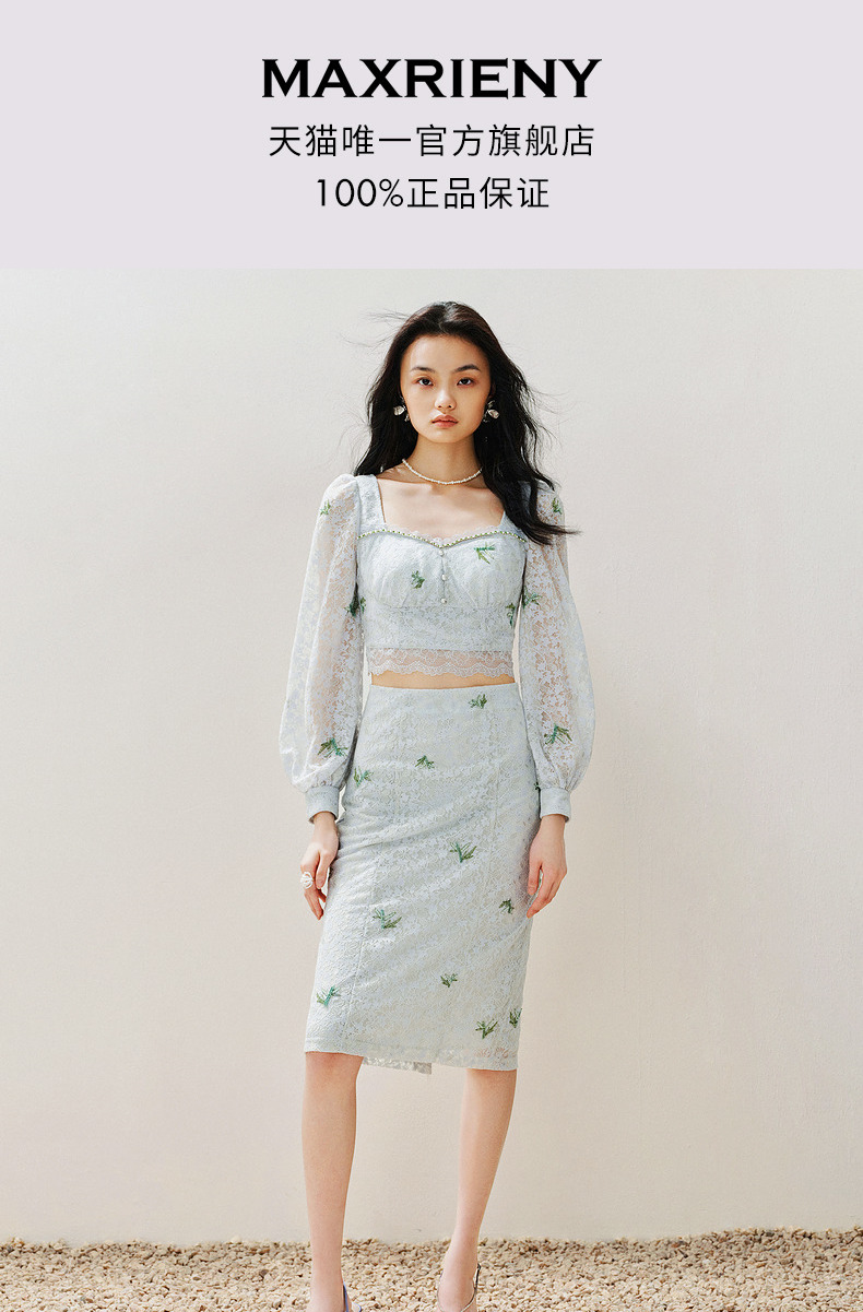 MAXRIENY精致复古感蕾丝半裙竹叶提花2024夏季新款高腰修身裙子(货号:MS85SK069)