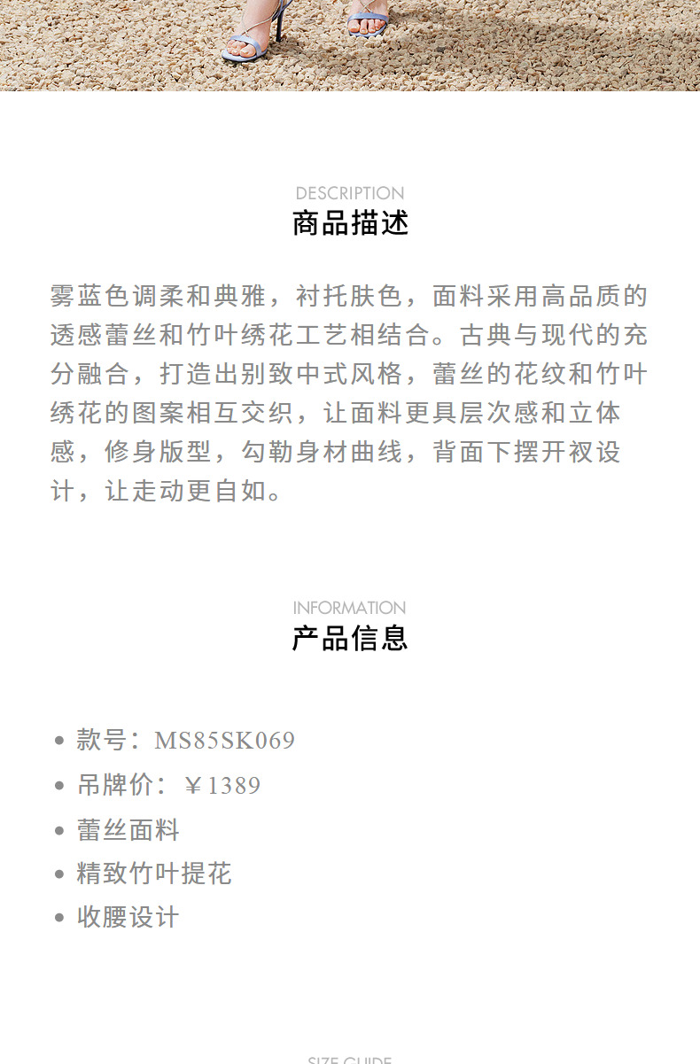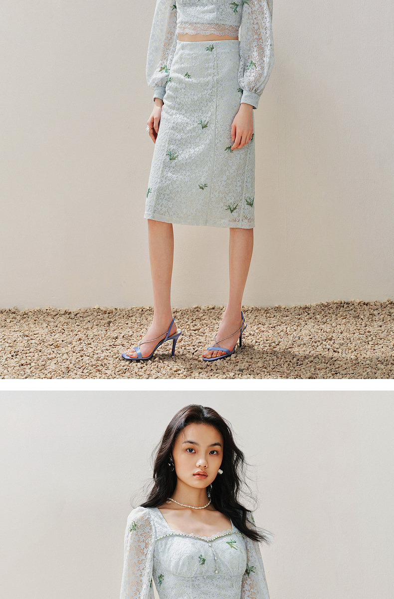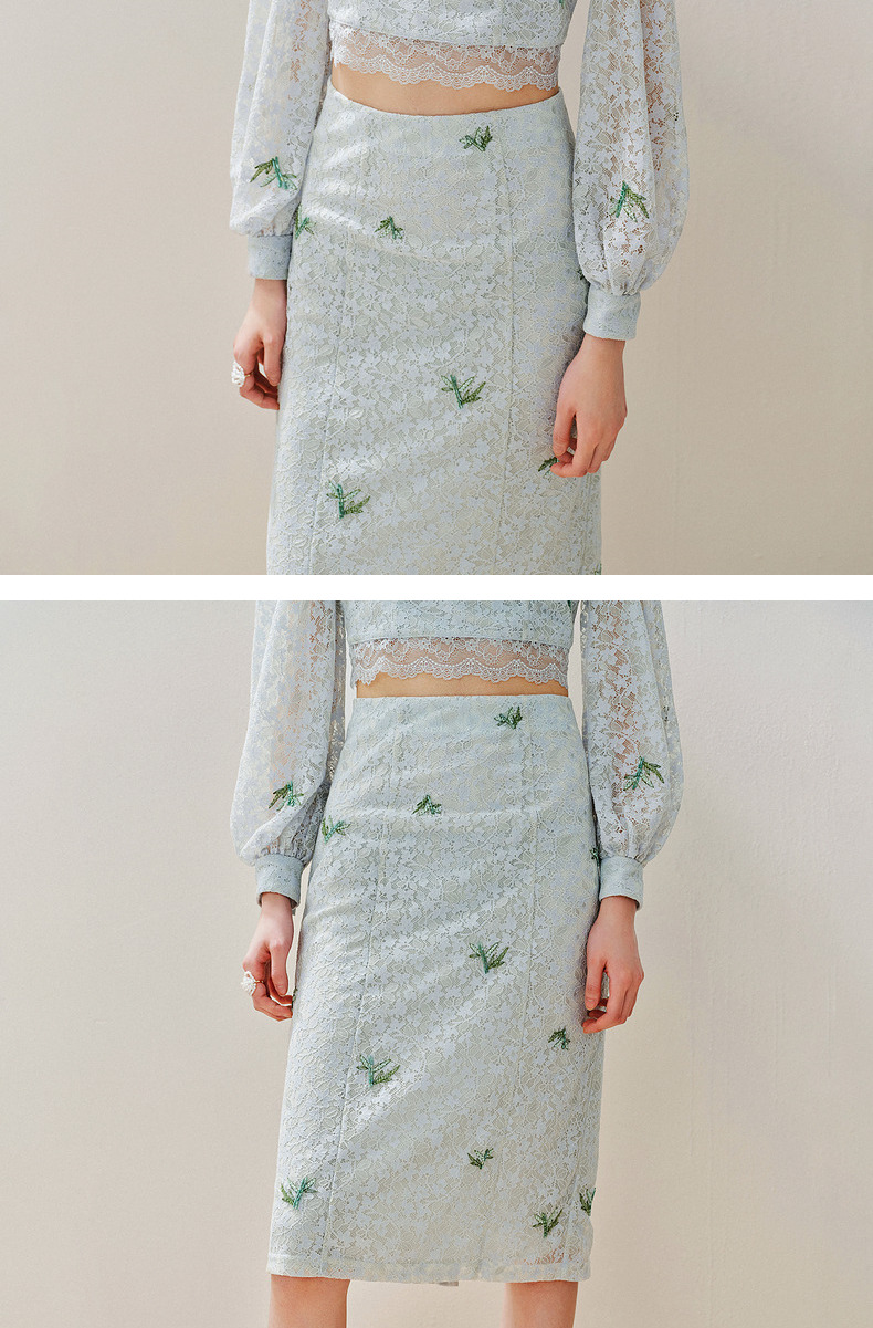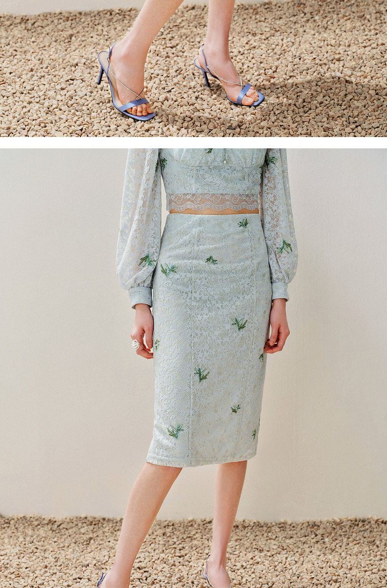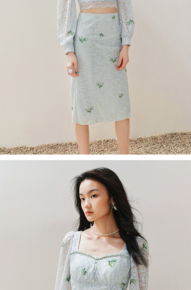 MAXRIENY精致复古感蕾丝半裙竹叶提花2024夏季新款高腰修身裙子(货号:MS85SK069)