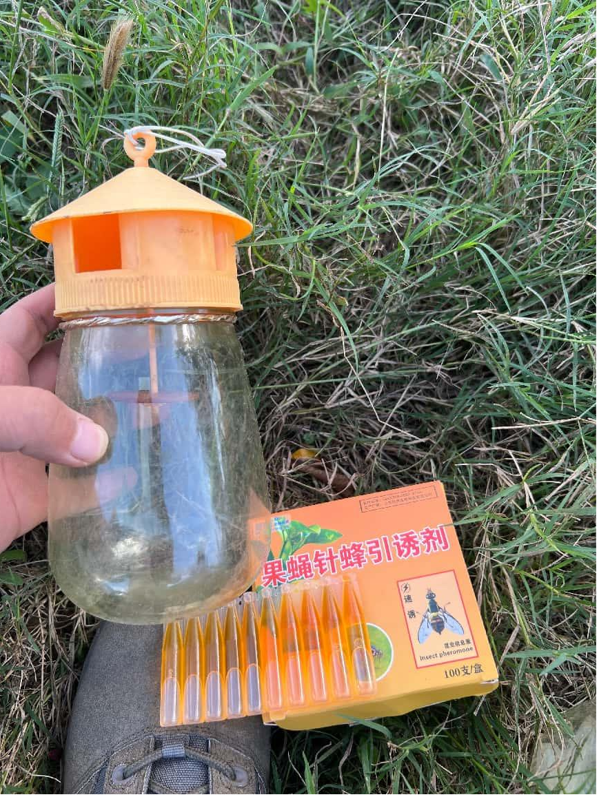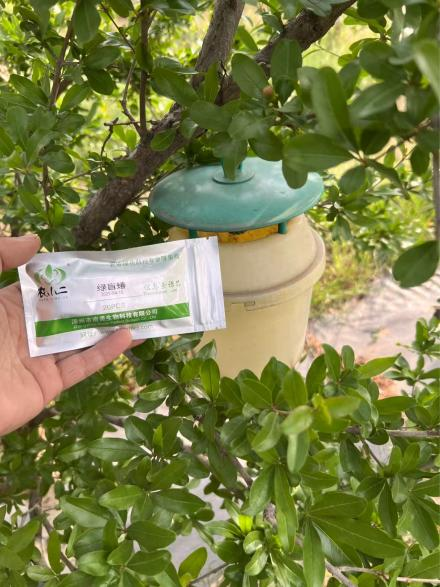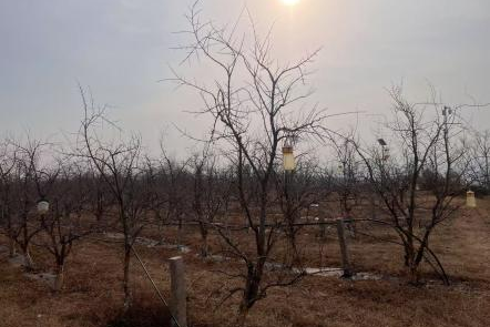 病虫害管理:自制糖醋液和果树喷剂配合灭虫灯、黄板、蓝板、性诱剂来预防病虫害。
