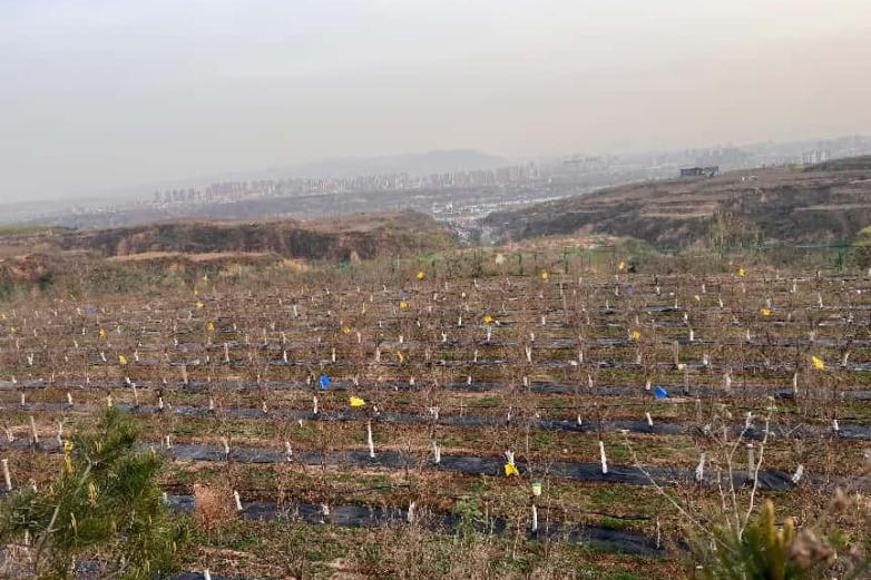 石榴种在河南巩义市邙山岭的一块独立山头,邙山岭是由黄河冲击而成的,黄土层深厚同时也是国内突尼斯软籽石榴的发源地。岭地周围的沟壑为生态种植和实践活力农耕农法提供了天然的隔断。