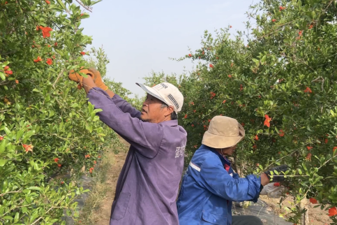 石榴的品种是突尼斯软籽石榴,种石榴的农人是张斌和李岫纳,张斌负责种石榴,李姐则负责卖石榴。