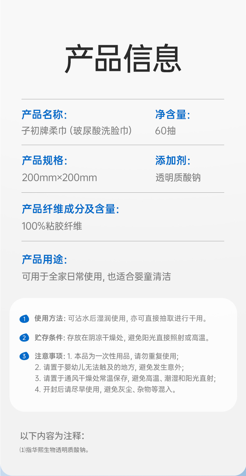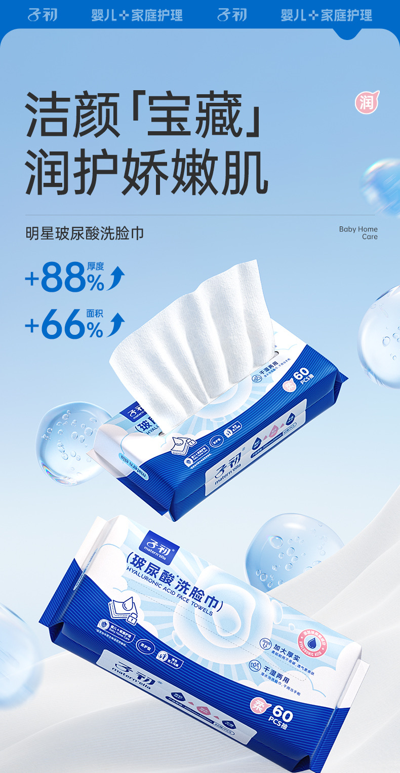 【孕味秒杀专属】子初牌柔巾(玻尿酸洗脸巾),200*200mm,60抽/包