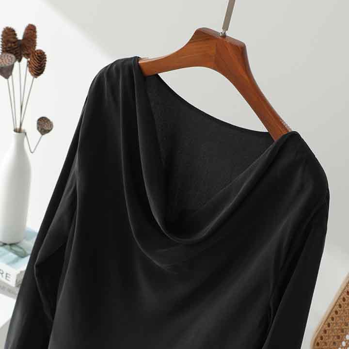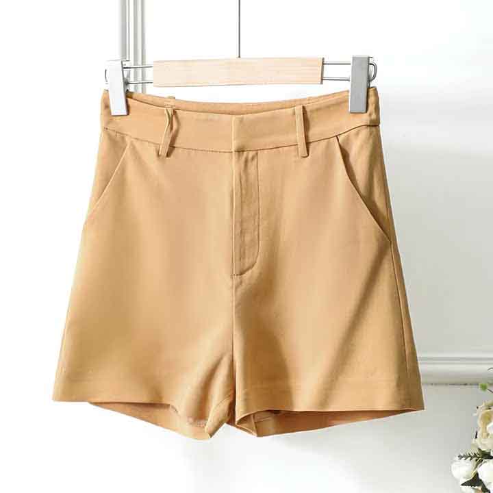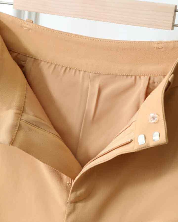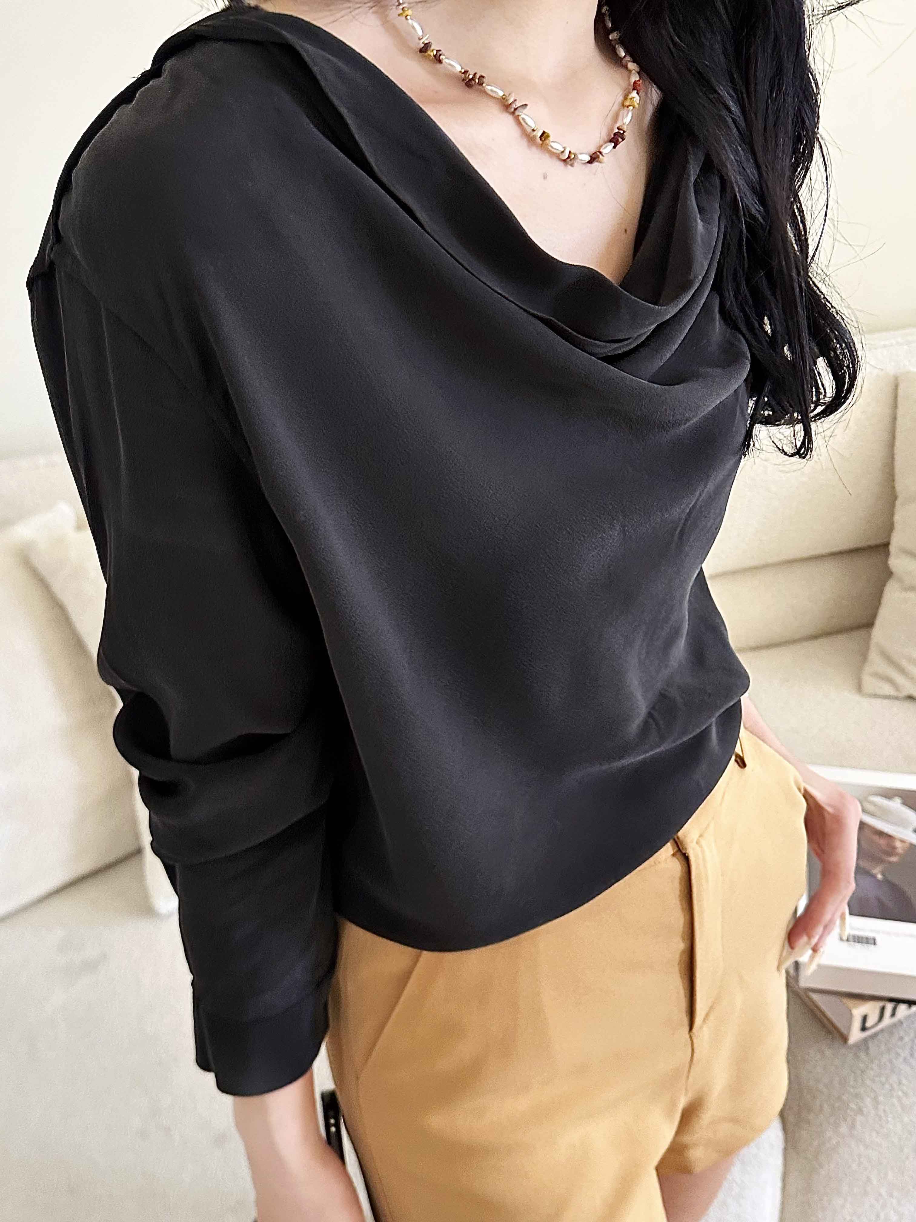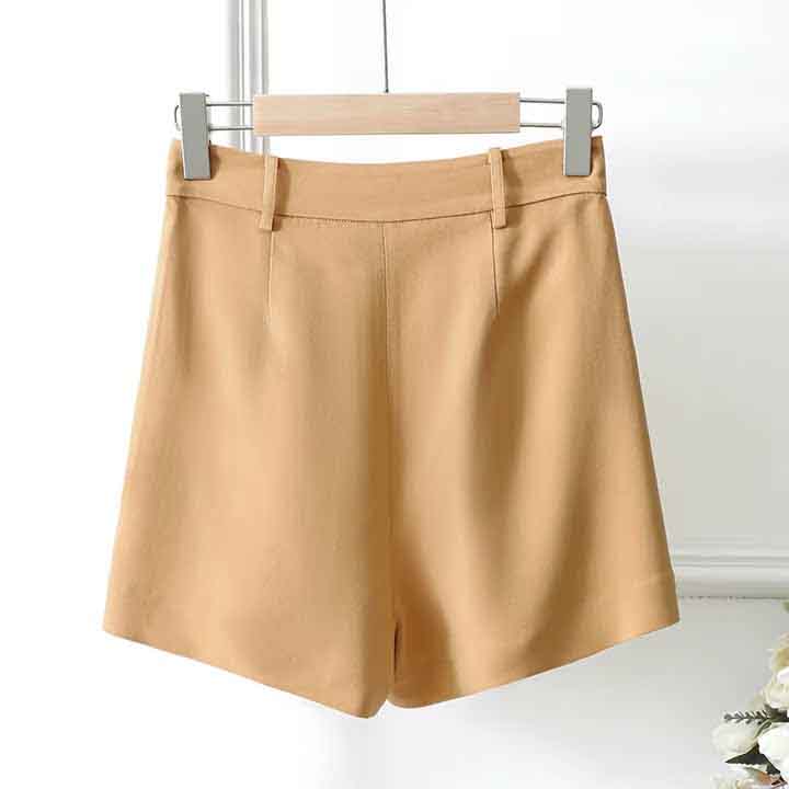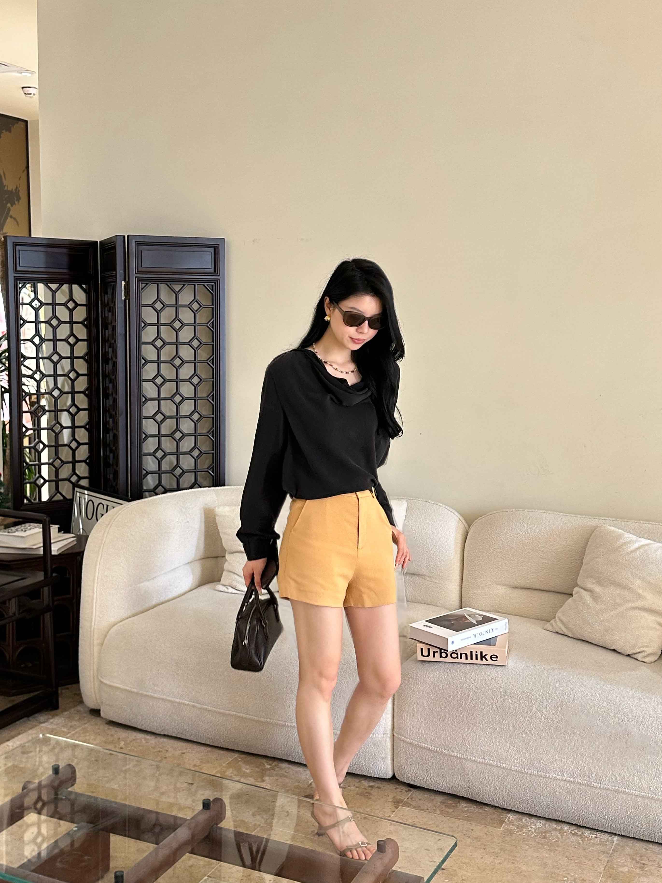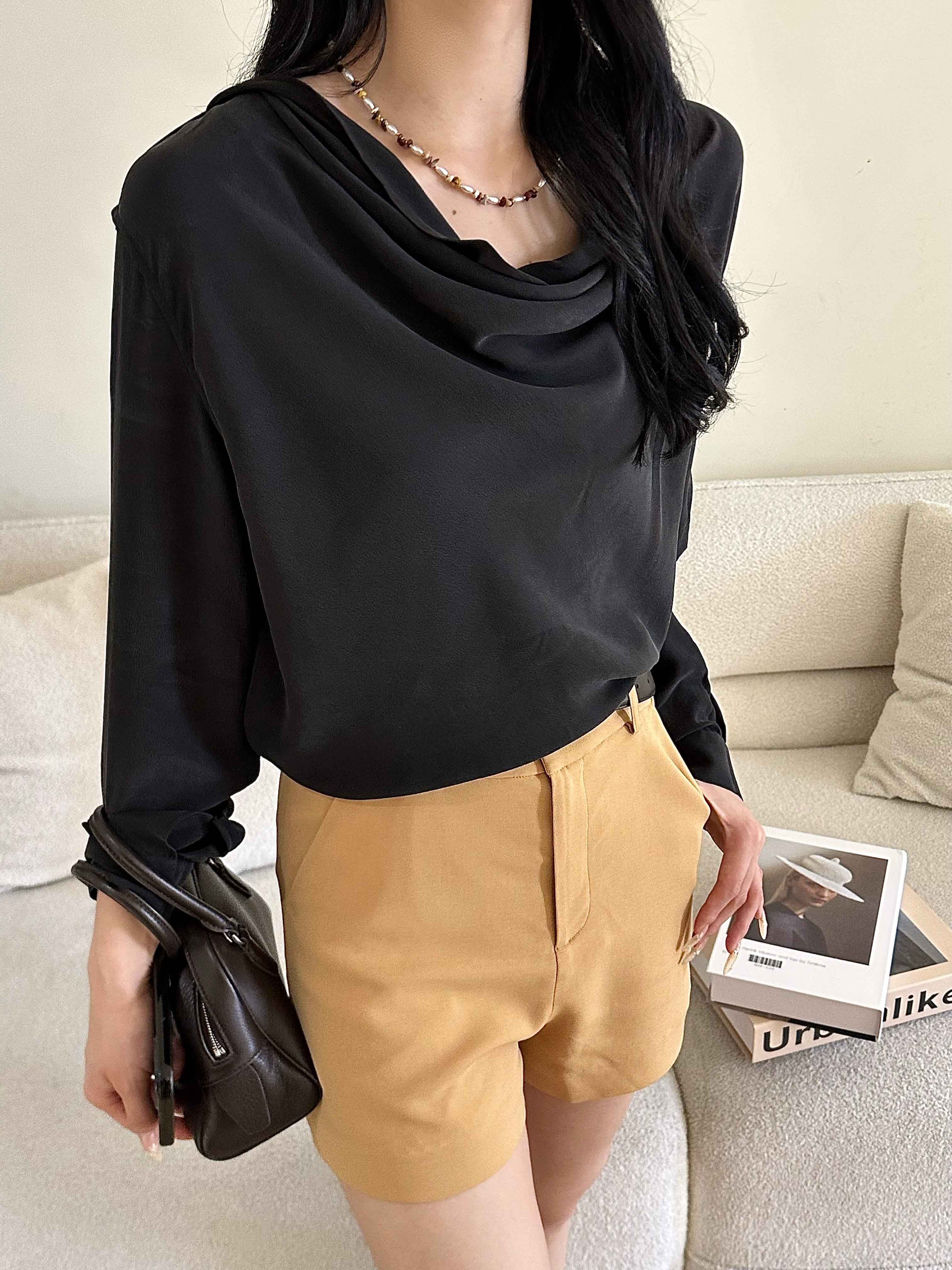 顺丰包邮洛诗琳99259轻奢真丝荡领上衣百搭高腰短裤通勤套装0021
