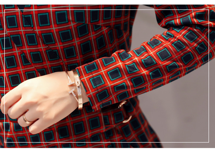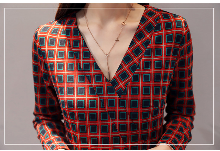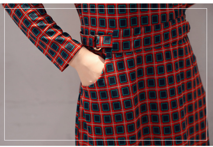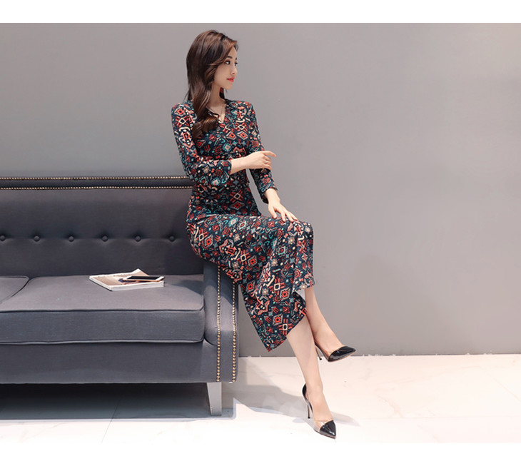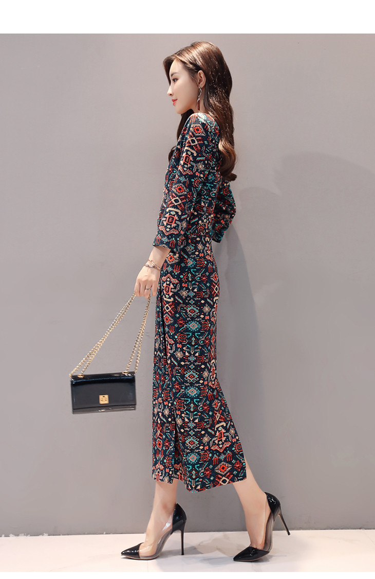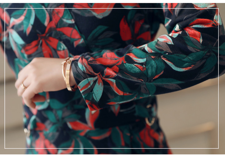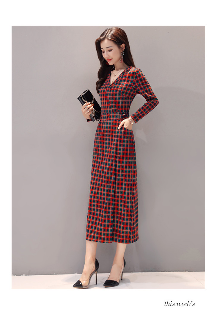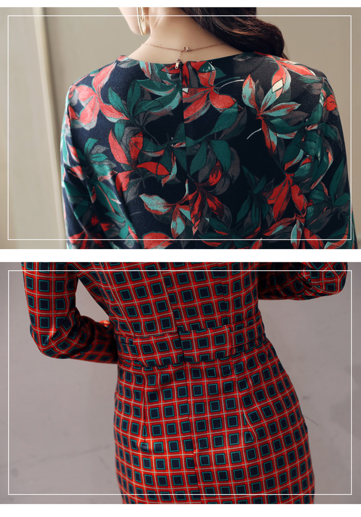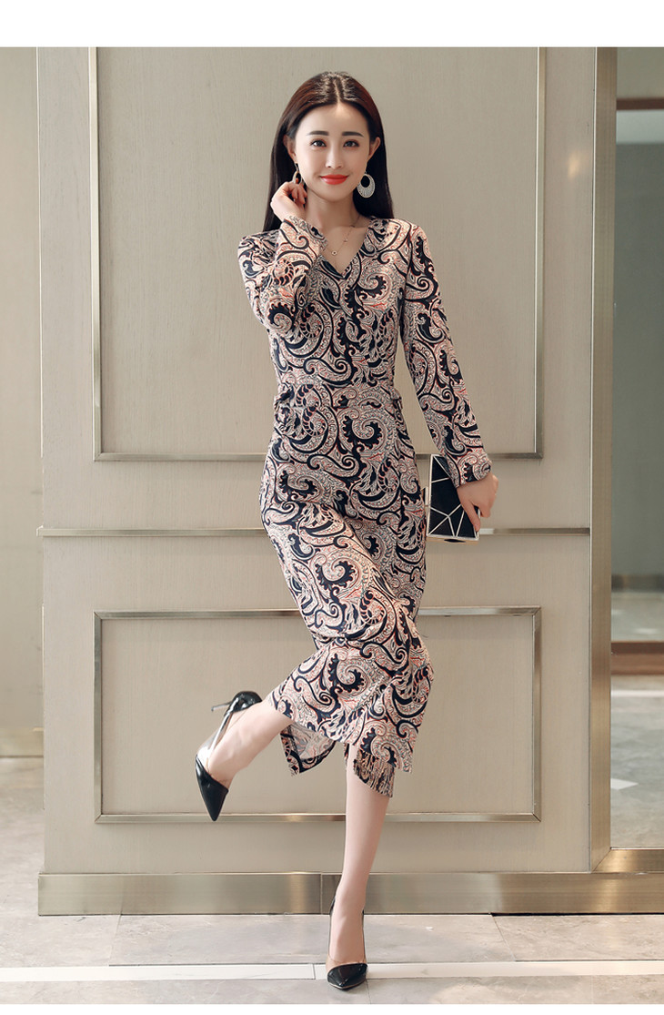 ALXBL1903中长款七分袖拉链2017年春季连衣裙花色V领中腰