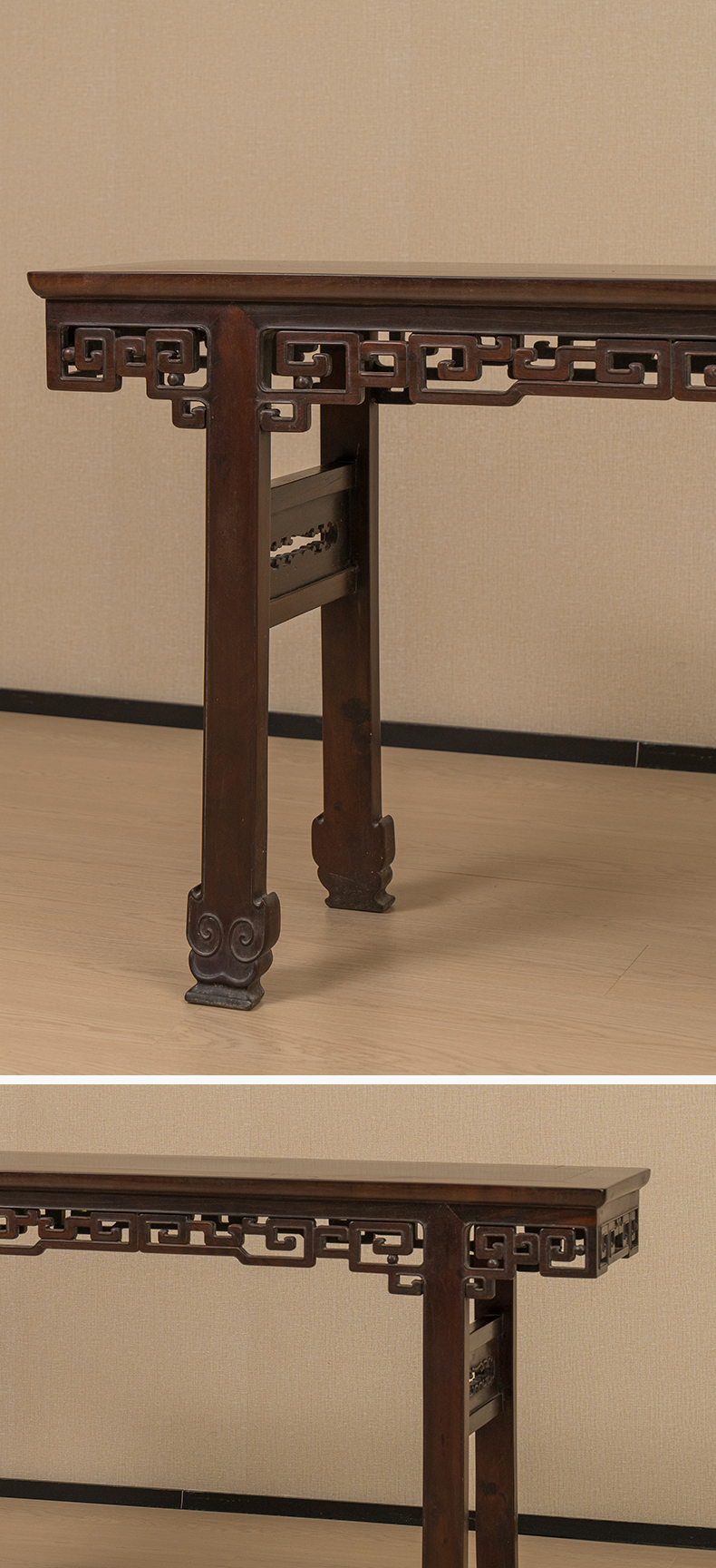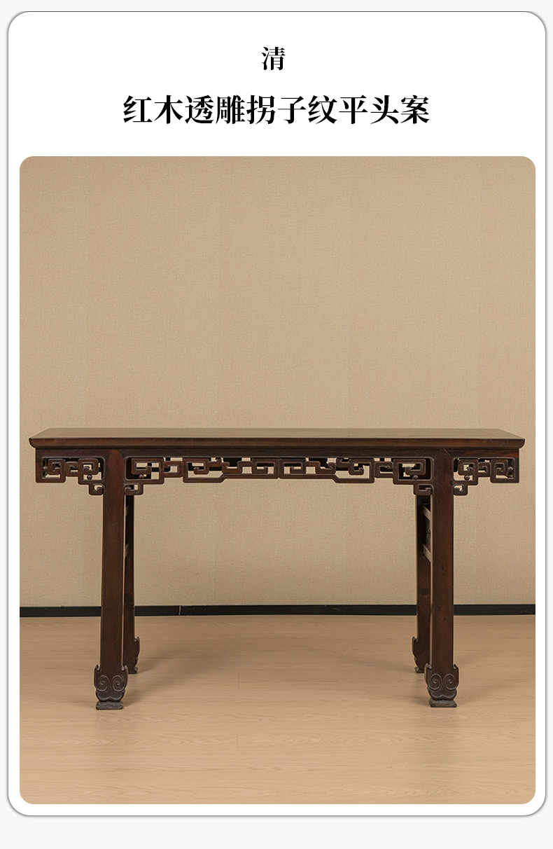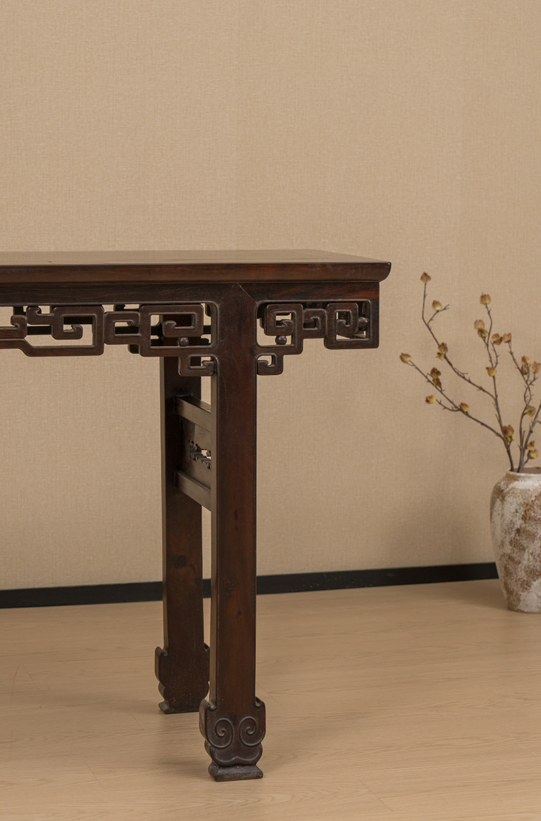 清 红木透雕拐子纹平头案
