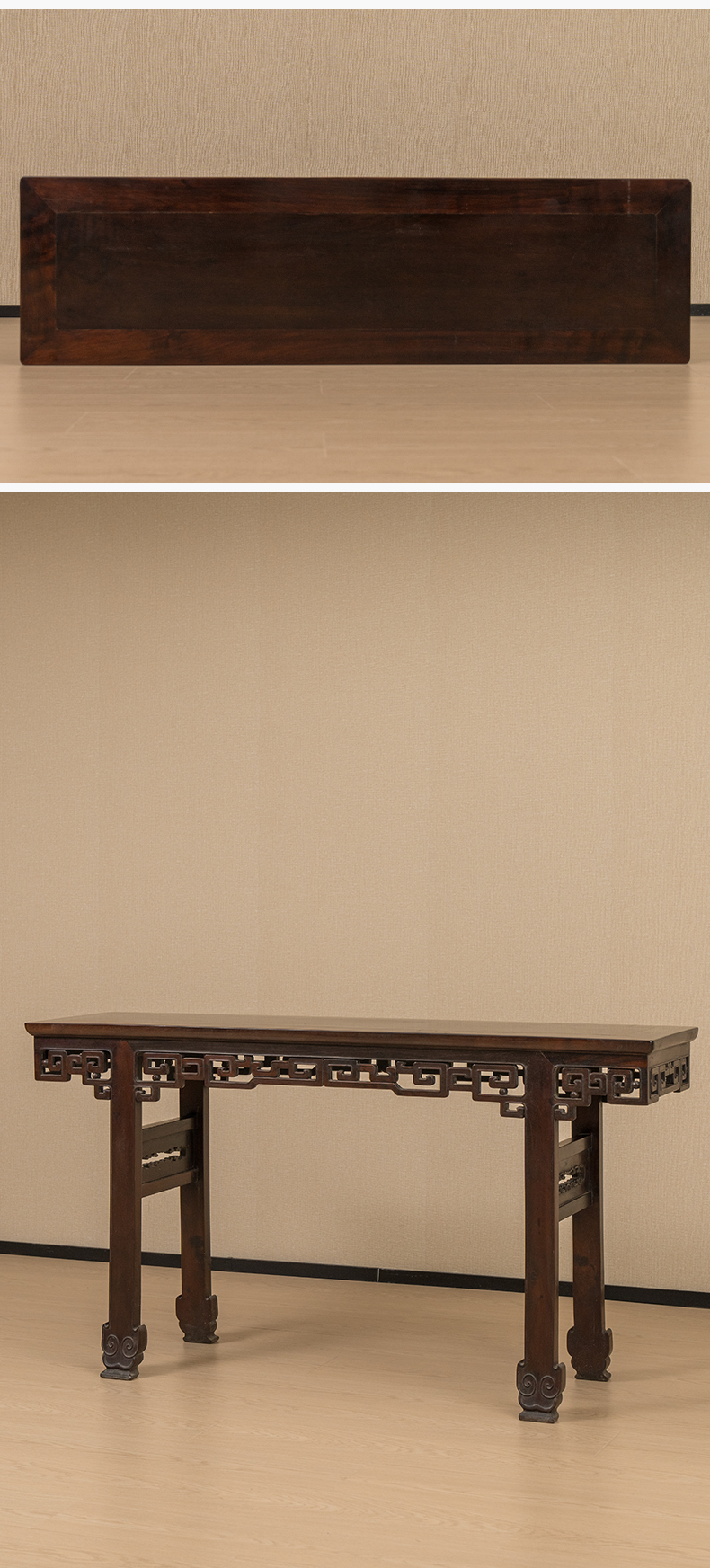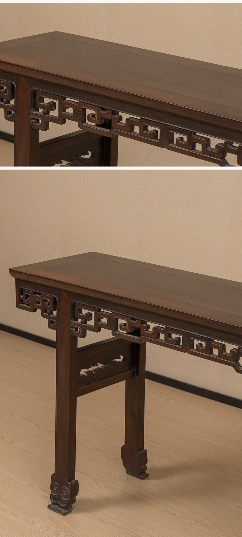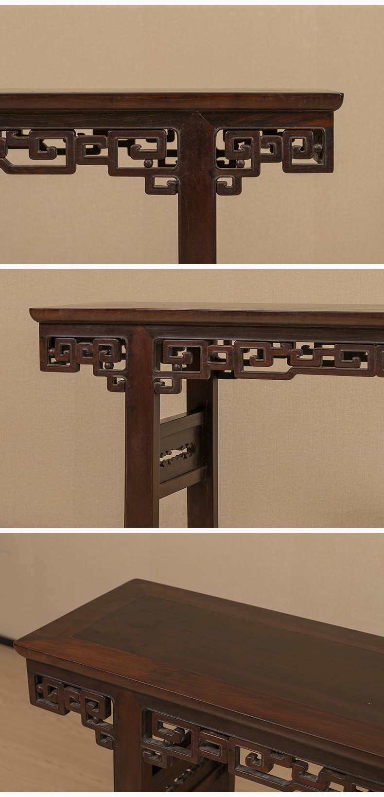 清 红木透雕拐子纹平头案
