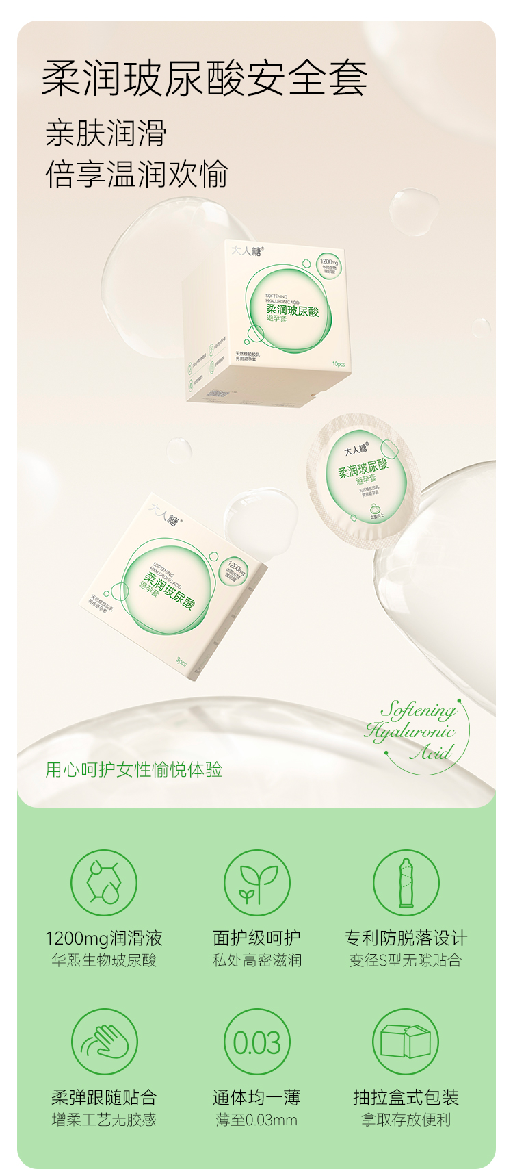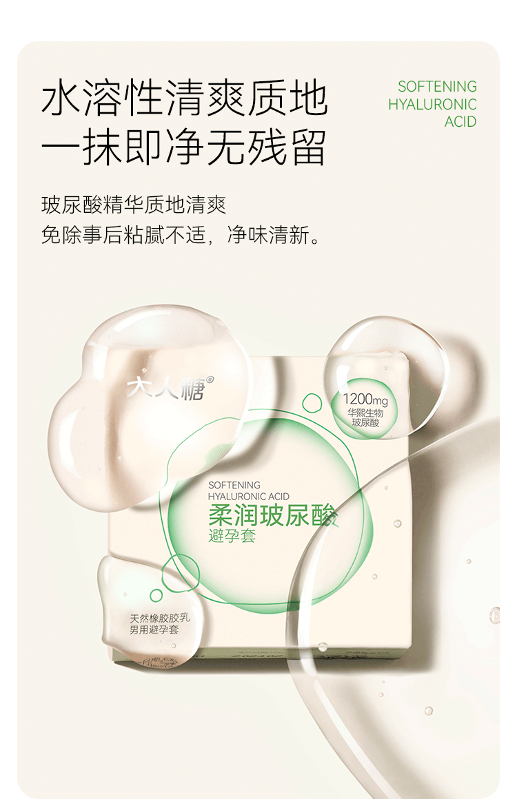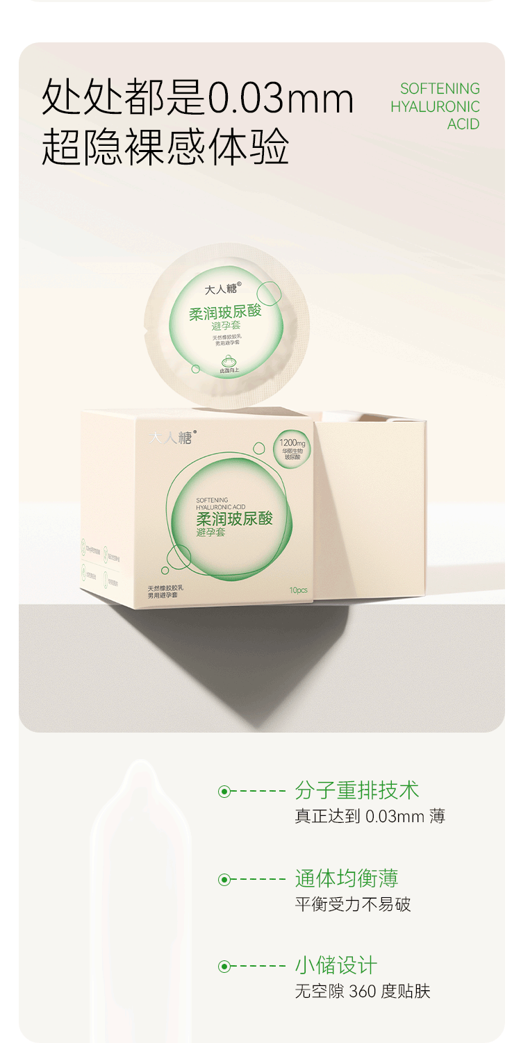 【隐私发货 官方直发 商场同款】大人糖 水润超薄 玻尿酸安全套避孕套