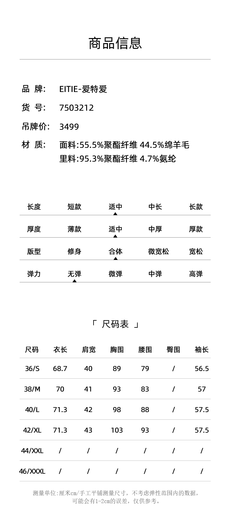 EITIE爱特爱品牌女装冬季修身圆领羊毛中长款毛织连衣裙5801514