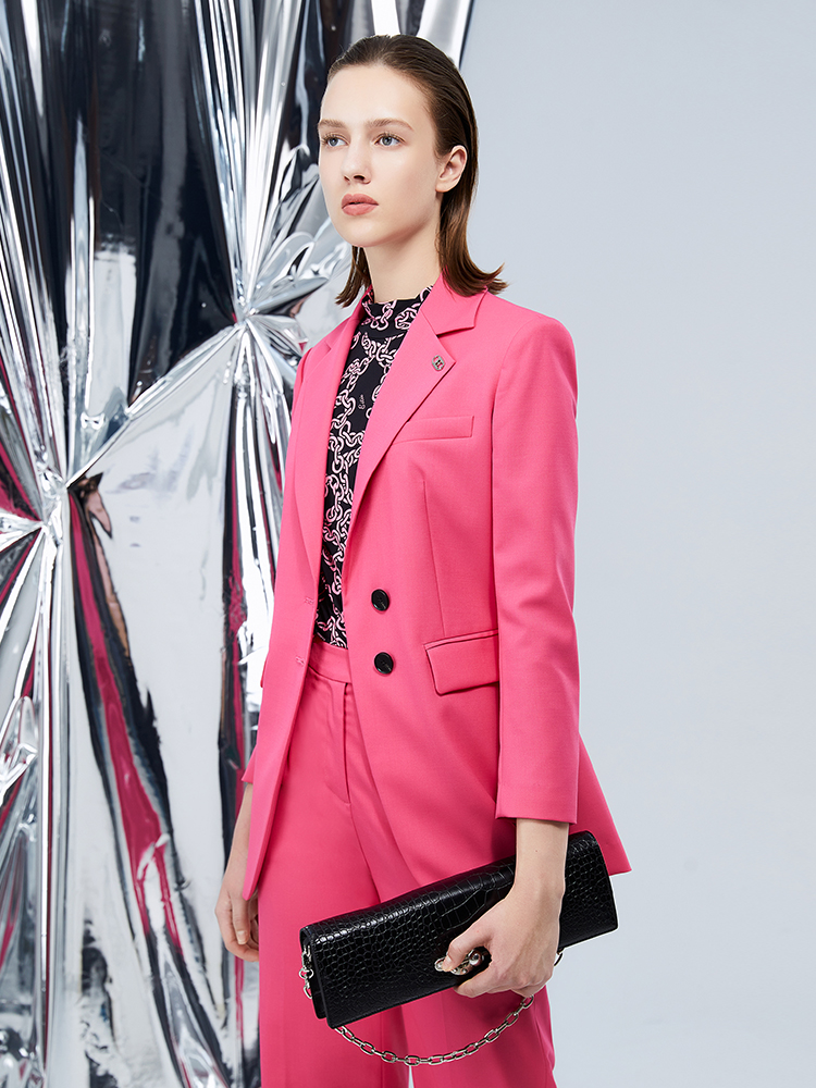 EITIE爱特爱女装早秋系领蕾丝镂空勾花喇叭袖大红连衣裙C1807150