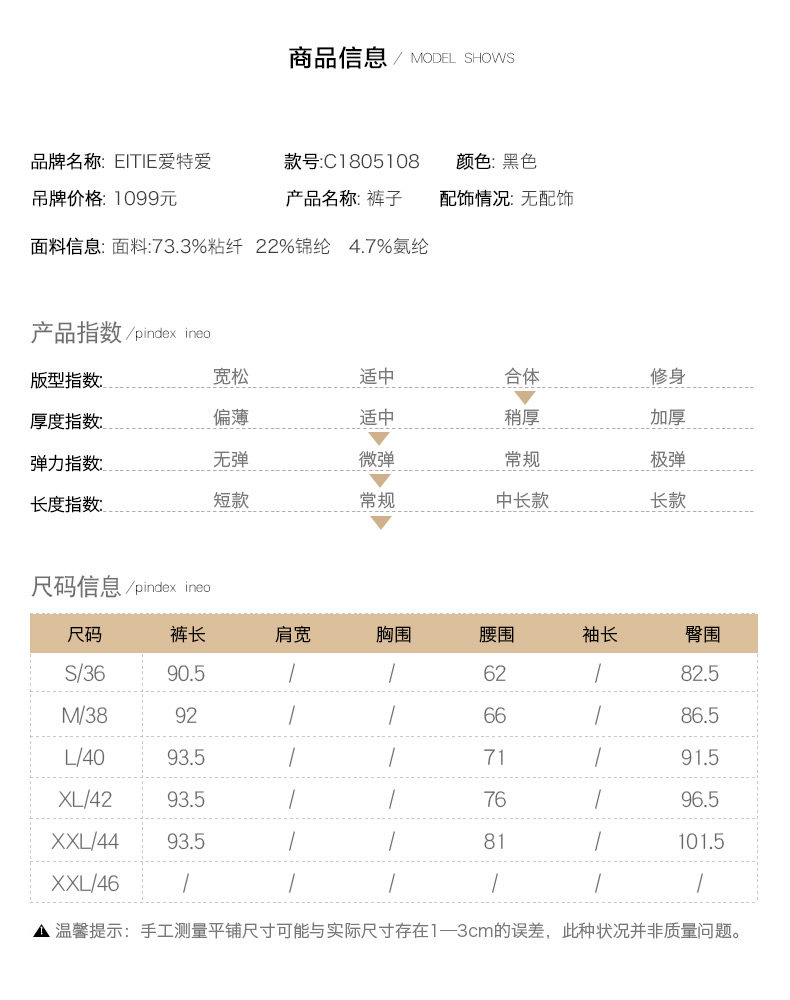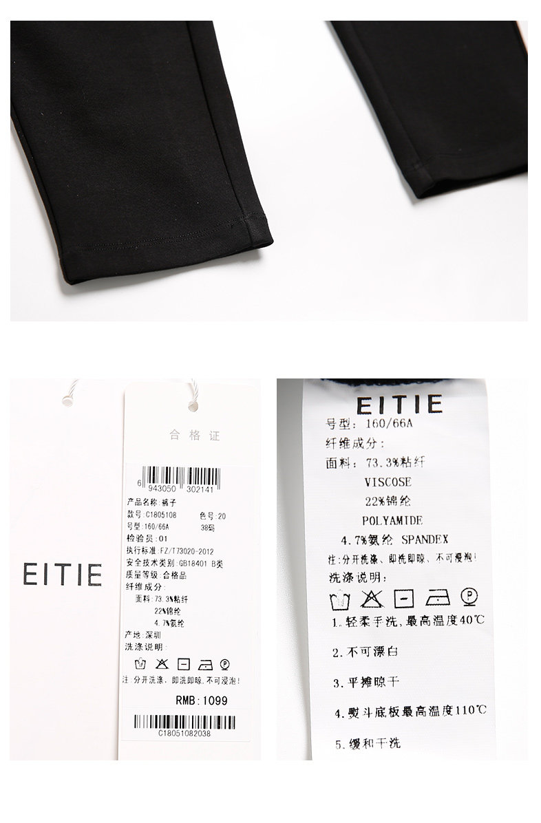 EITIE爱特爱女装春夏显瘦百搭通勤时尚修身打底小脚裤女长裤C1805108