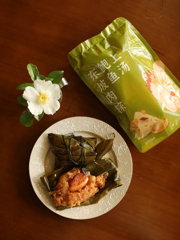 鲍鱼东坡肉粽,精选上等原料鲍鱼,真的是一整颗的鲍鱼,还有大块的东坡肉,香菇,馅料虽然没有黑松露云腿蛋黄粽丰富,但是一整颗的鲍鱼和大块的东坡肉还是俘获了我的心,鲍鱼肉质紧实弹牙,东坡肉由肥瘦黄金比例的五花肉制作而成,软糯不腻,一口粽中尽享海味与肉香,口感层次丰富,非常满足!