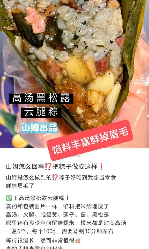 ☑️“某书爆款!上汤黑松露云腿蛋黄粽,一口封神!后悔没早买!”