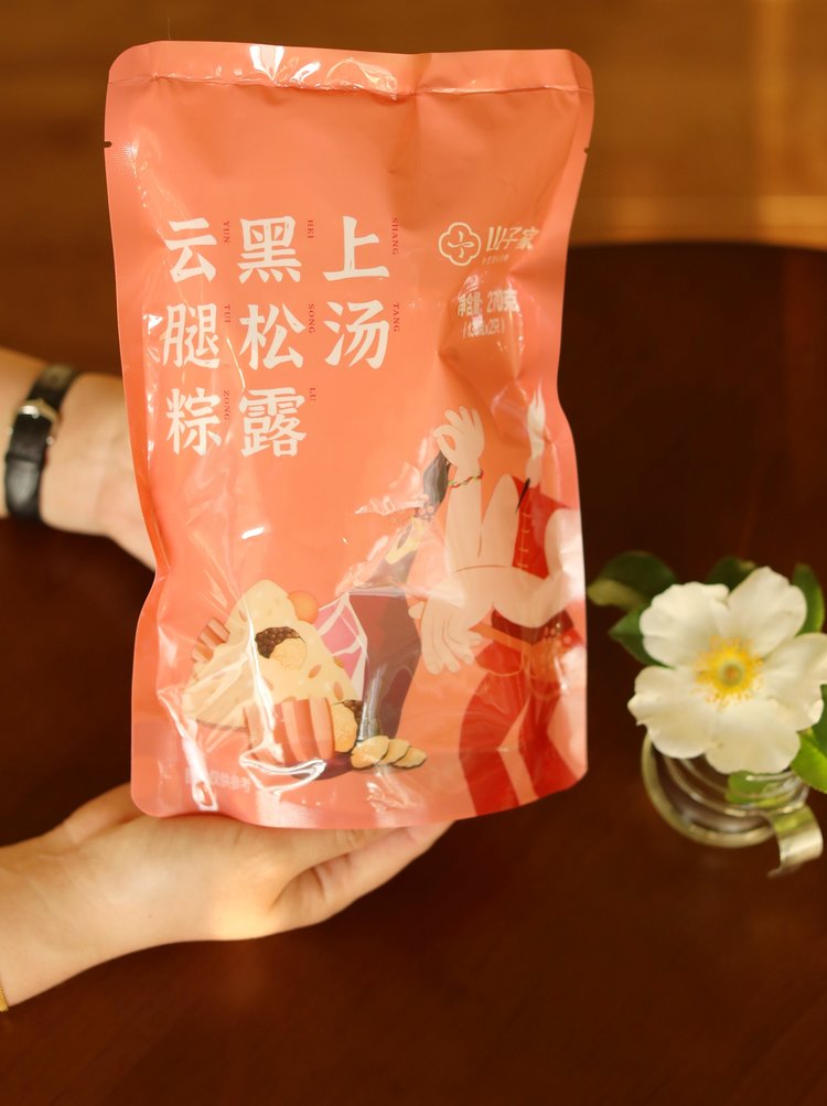 生米灌汤工艺,上汤浸润糯米一次成熟,可以快速锁住美味锁住鲜味,这也是粽子好吃的关键,每一粒米都被高汤包裹着,是其它粽子没有的口感!