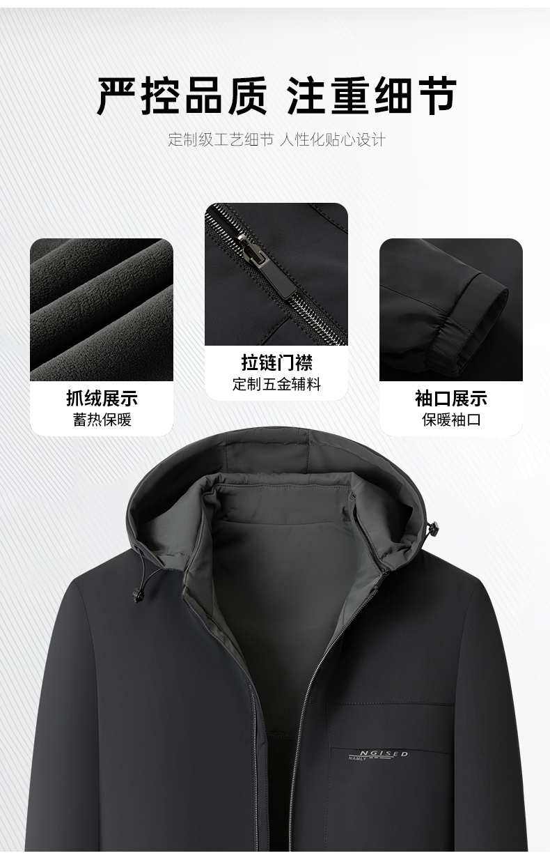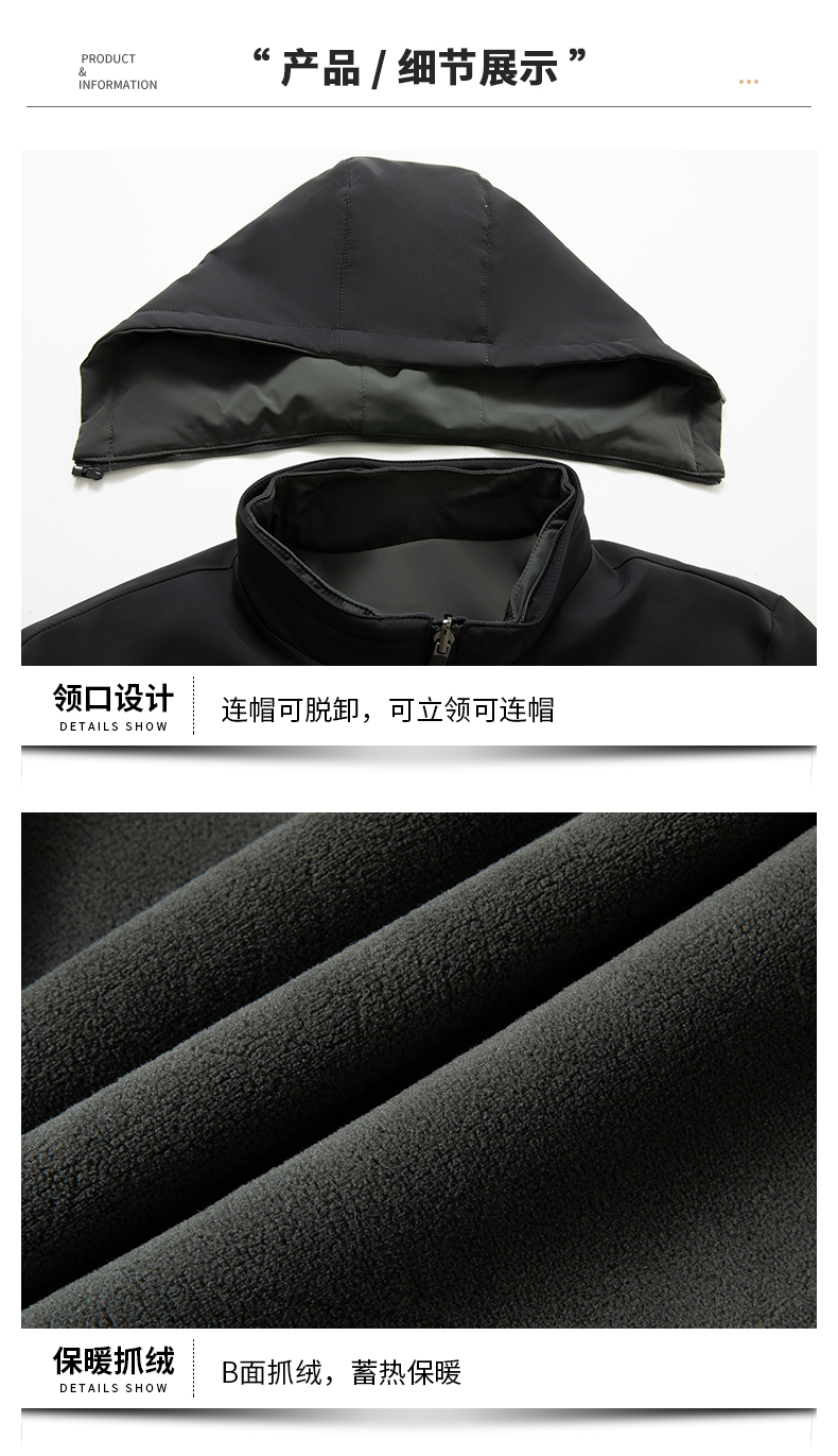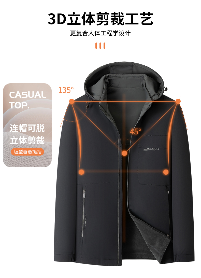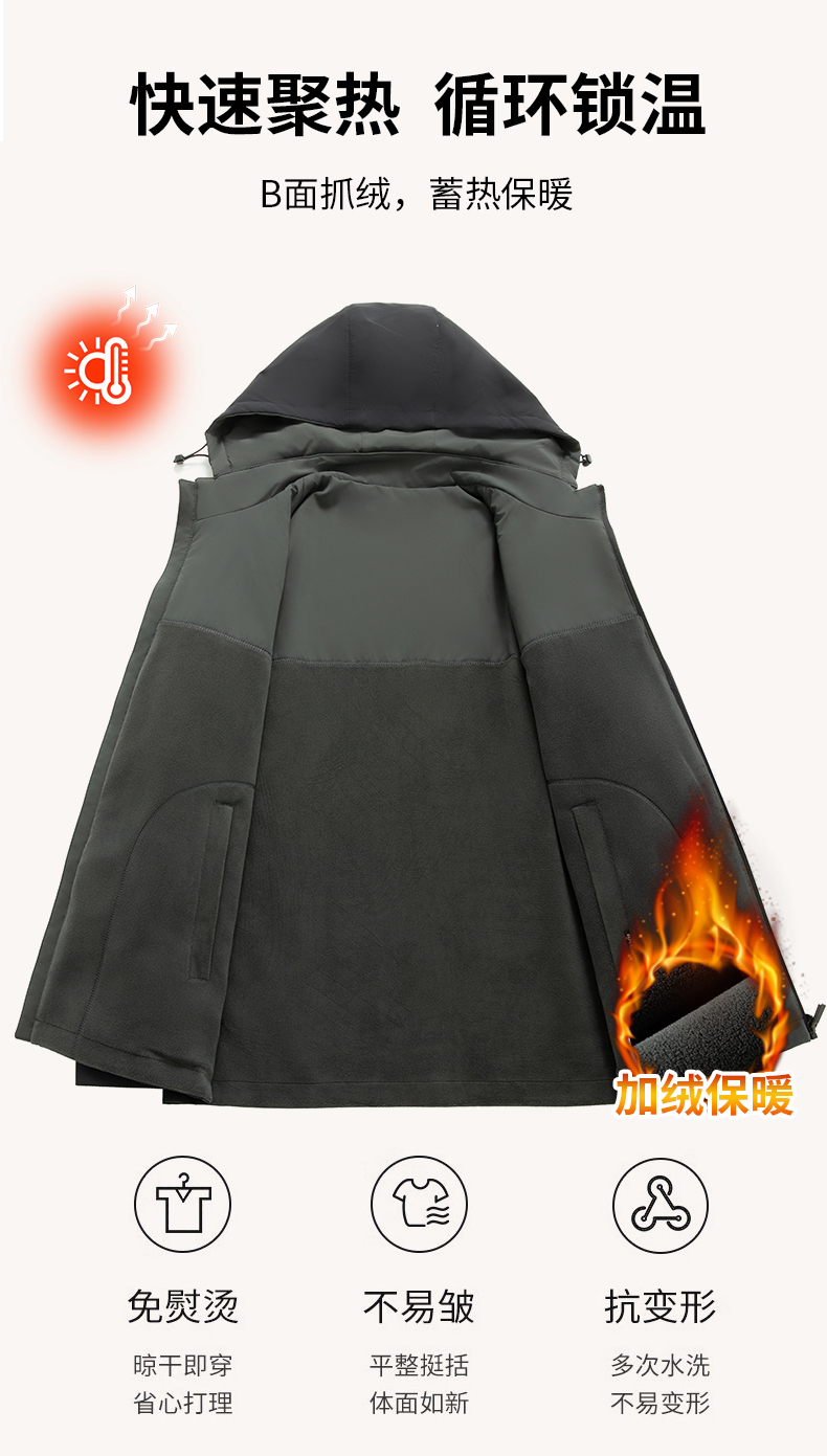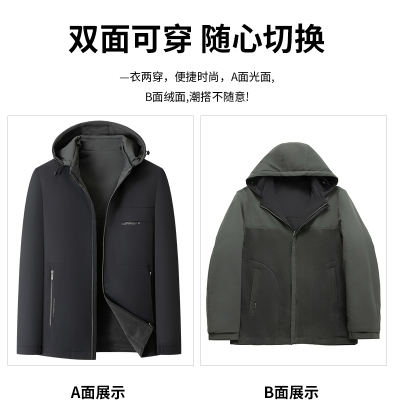 【可拆卸抓绒内胆】【新款DKP】大依优型大码连帽可拆卸帽三合一夹克棉服休闲胖子大码男休闲宽松加肥加大上衣冬季外套