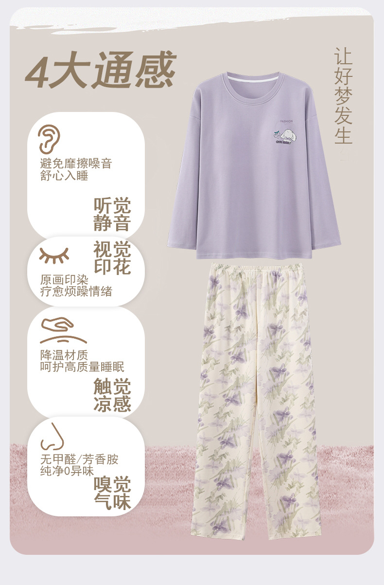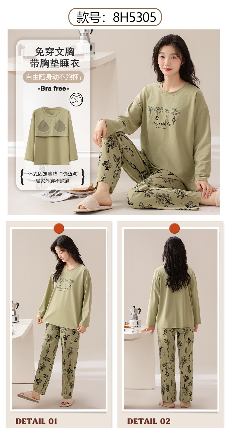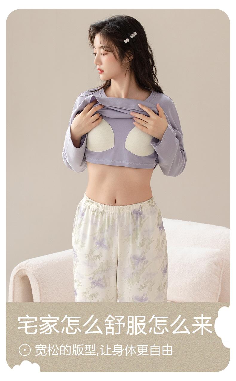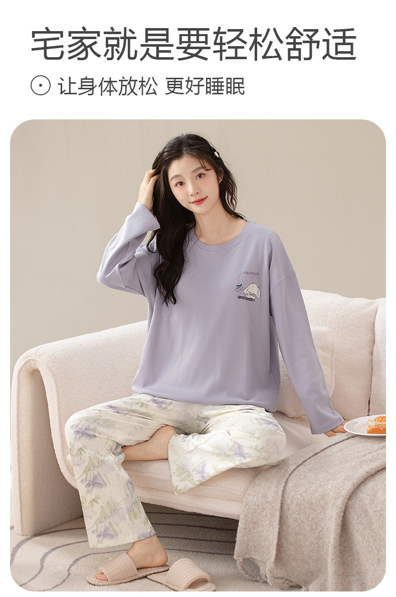 雀说 【带胸垫】纯棉睡衣女秋季新款长袖长裤套装 商品图2