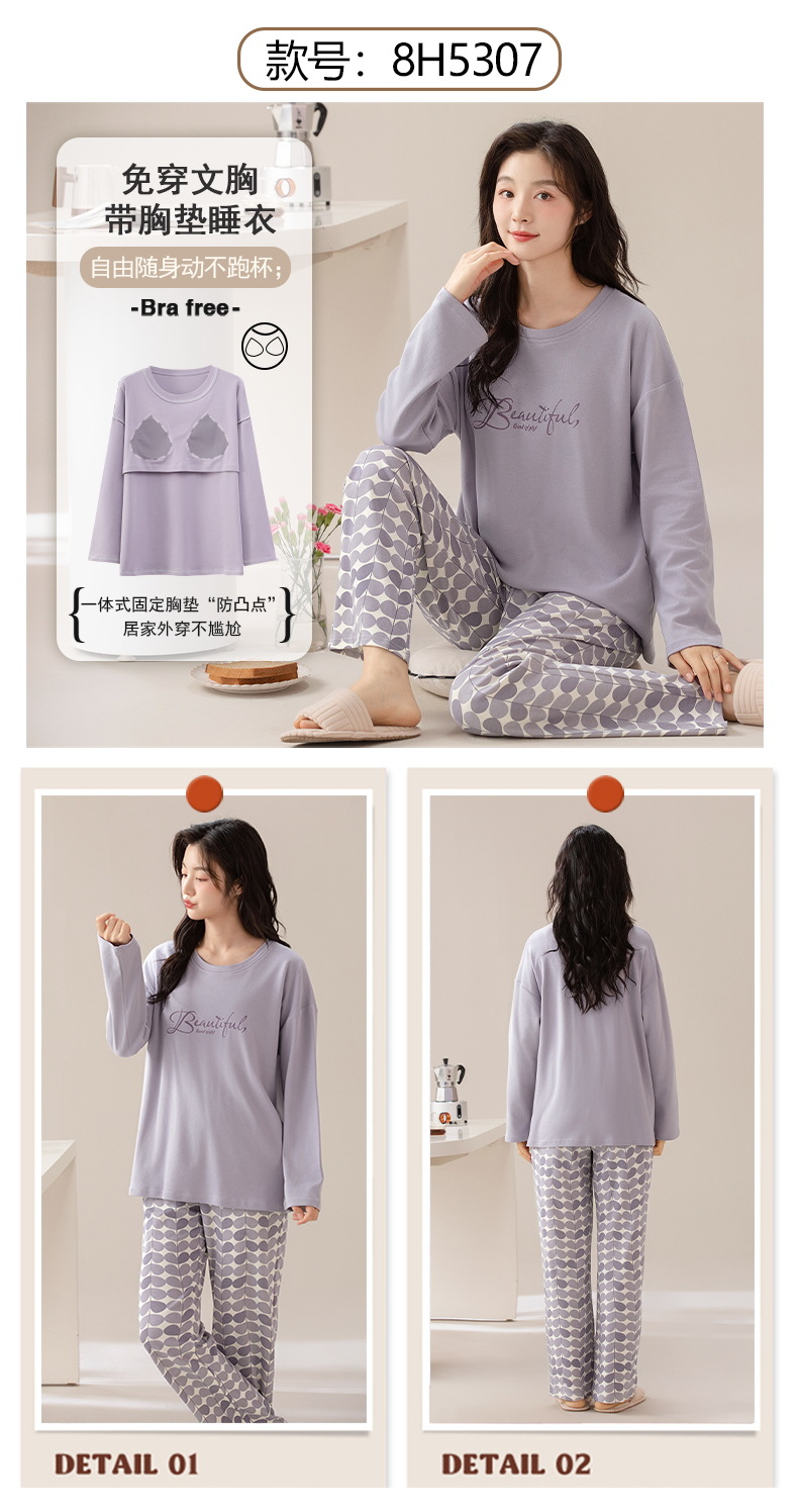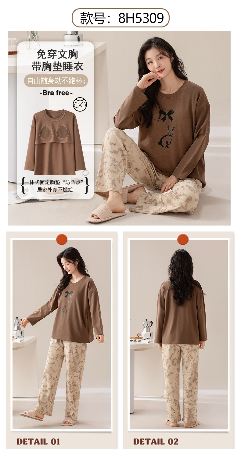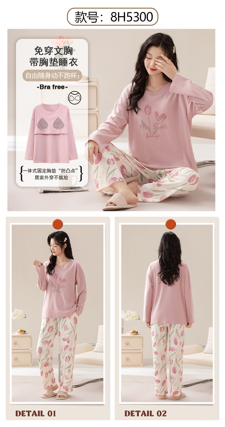 雀说 【带胸垫】纯棉睡衣女秋季新款长袖长裤套装 商品图2