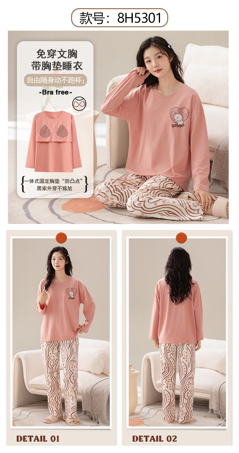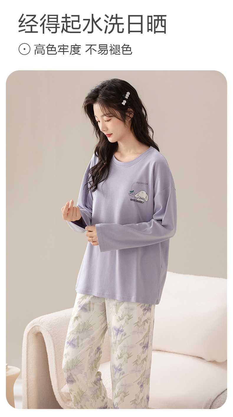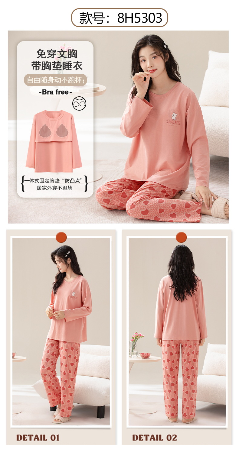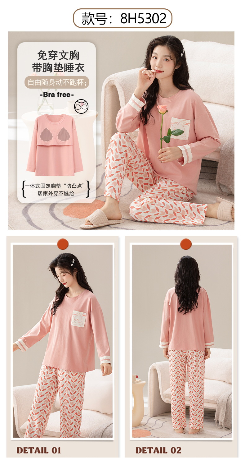 雀说 【带胸垫】纯棉睡衣女秋季新款长袖长裤套装 商品图3