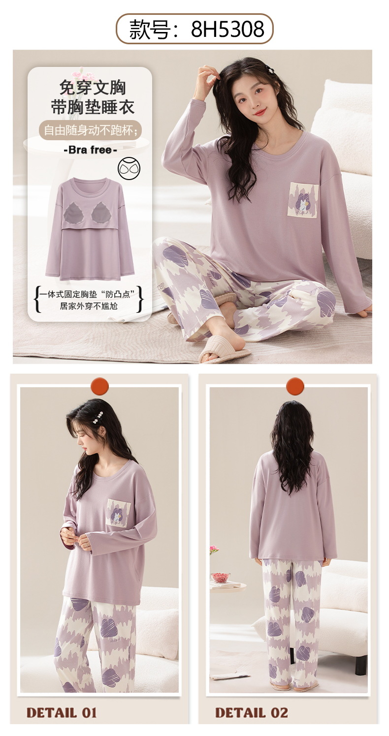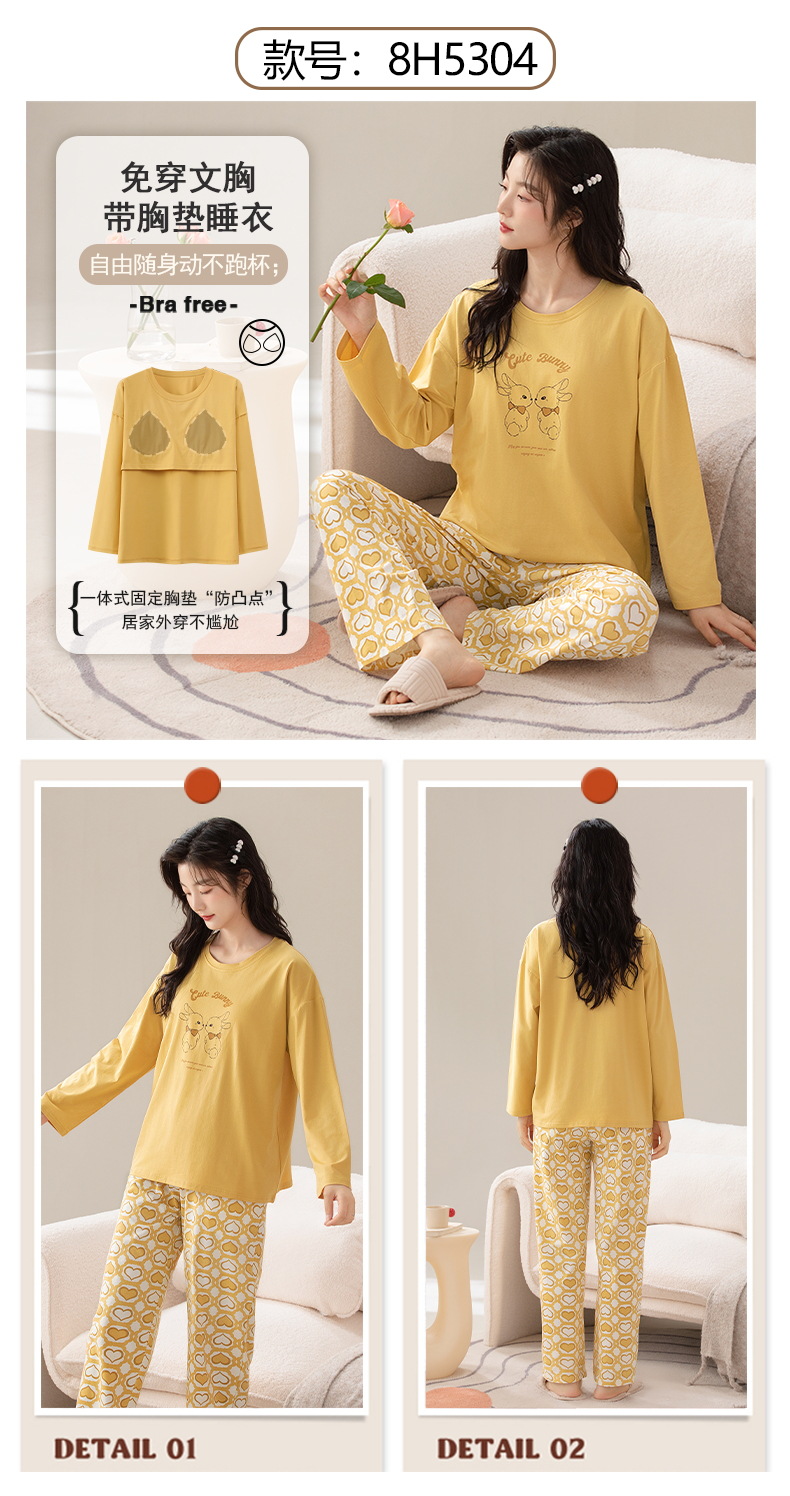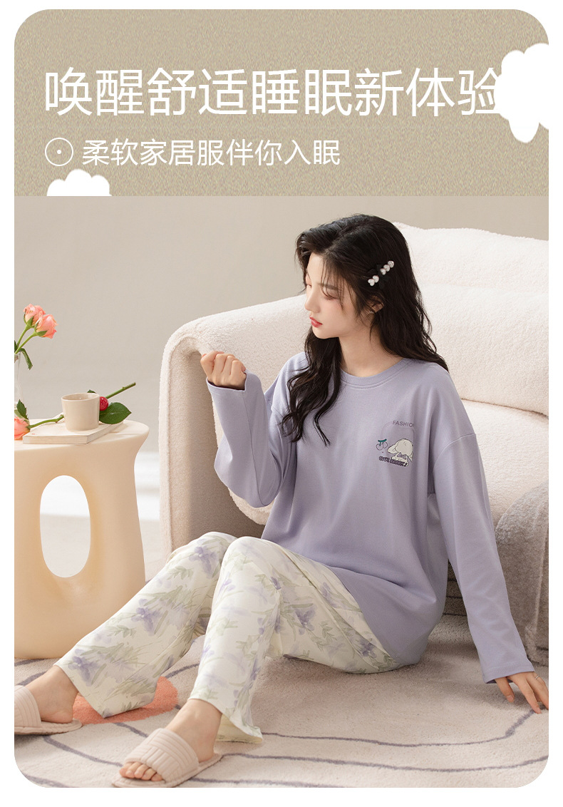 雀说 【带胸垫】纯棉睡衣女秋季新款长袖长裤套装 商品图0
