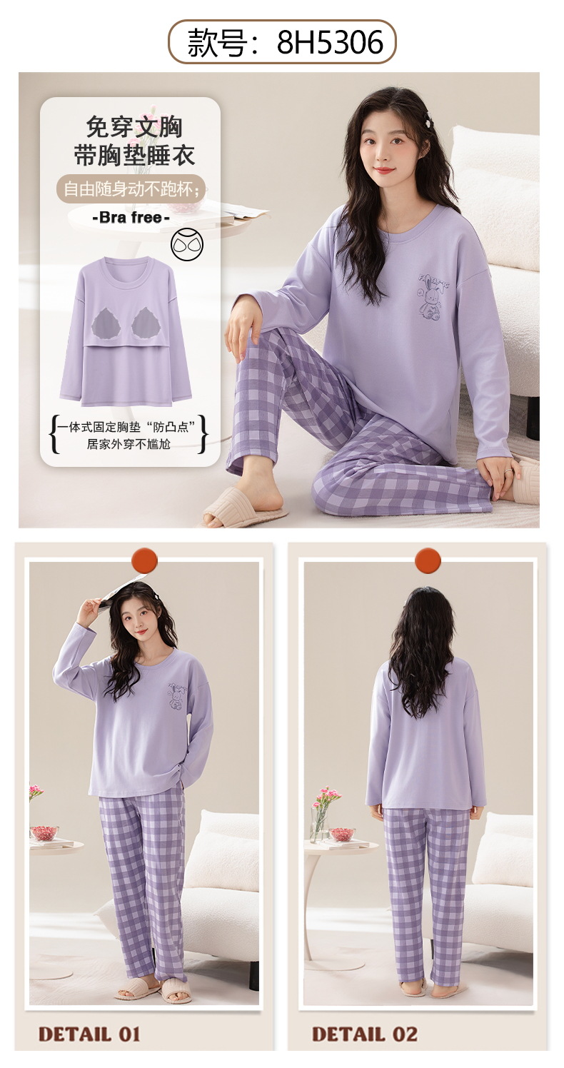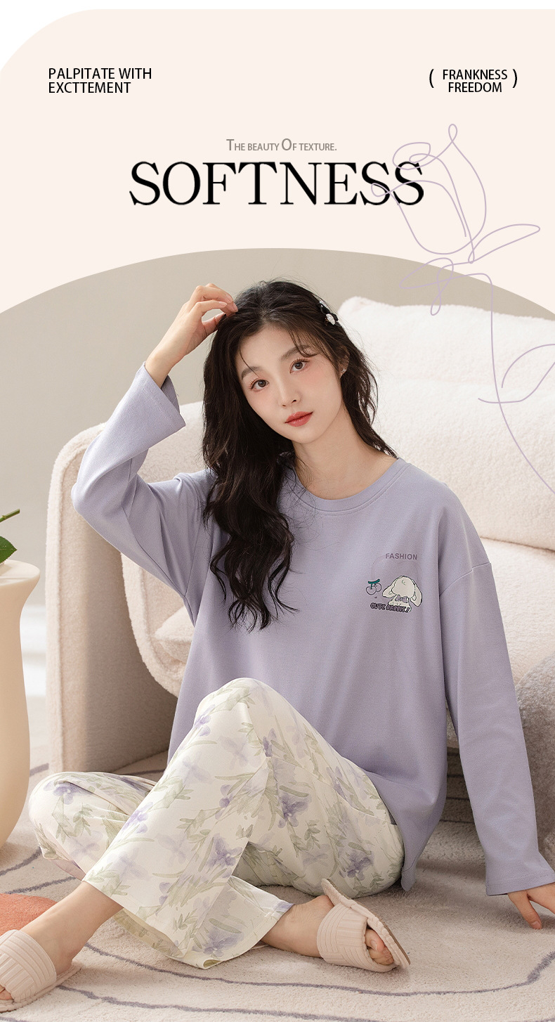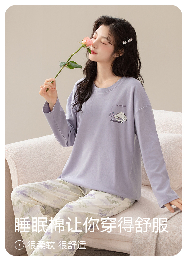 雀说 【带胸垫】纯棉睡衣女秋季新款长袖长裤套装 商品图0