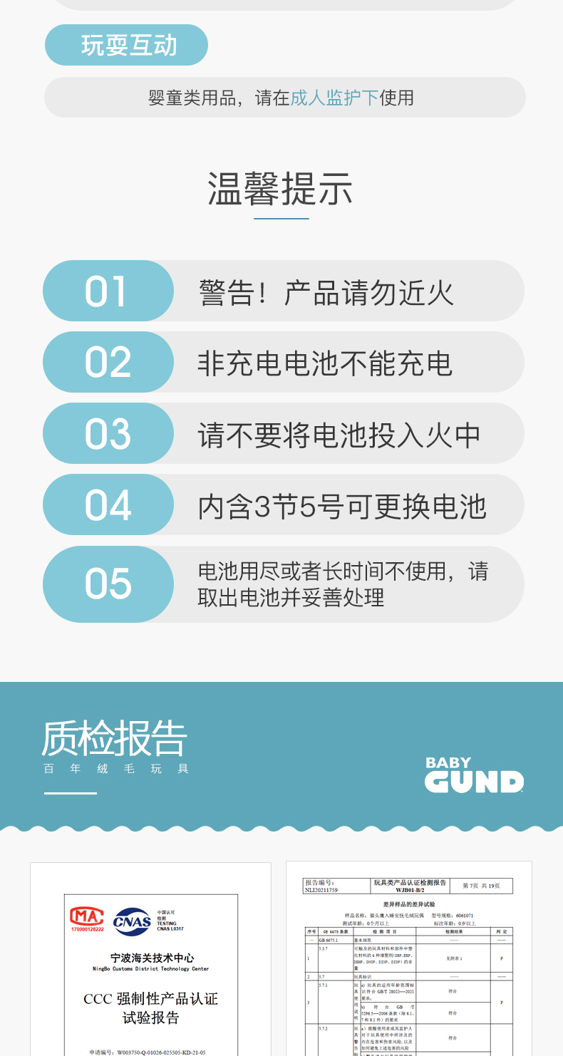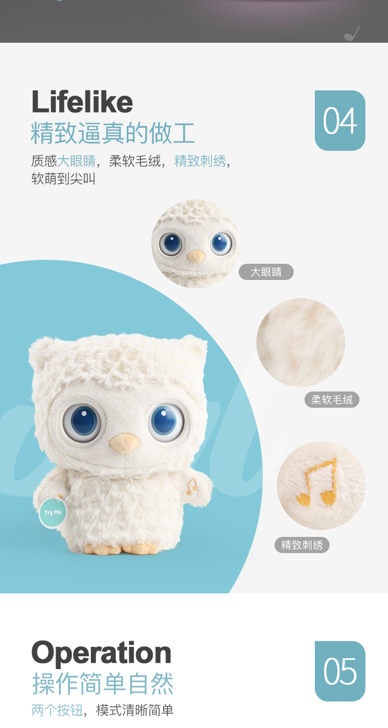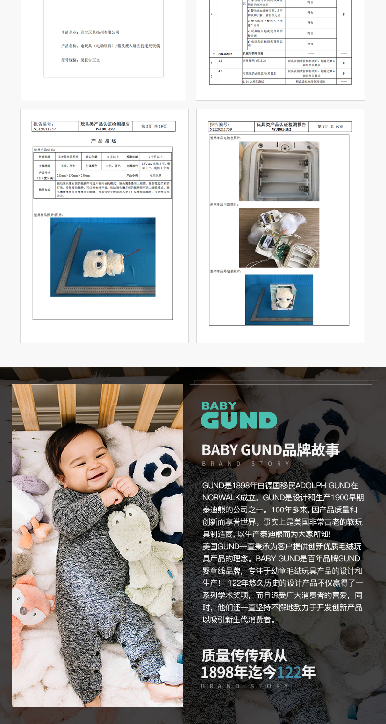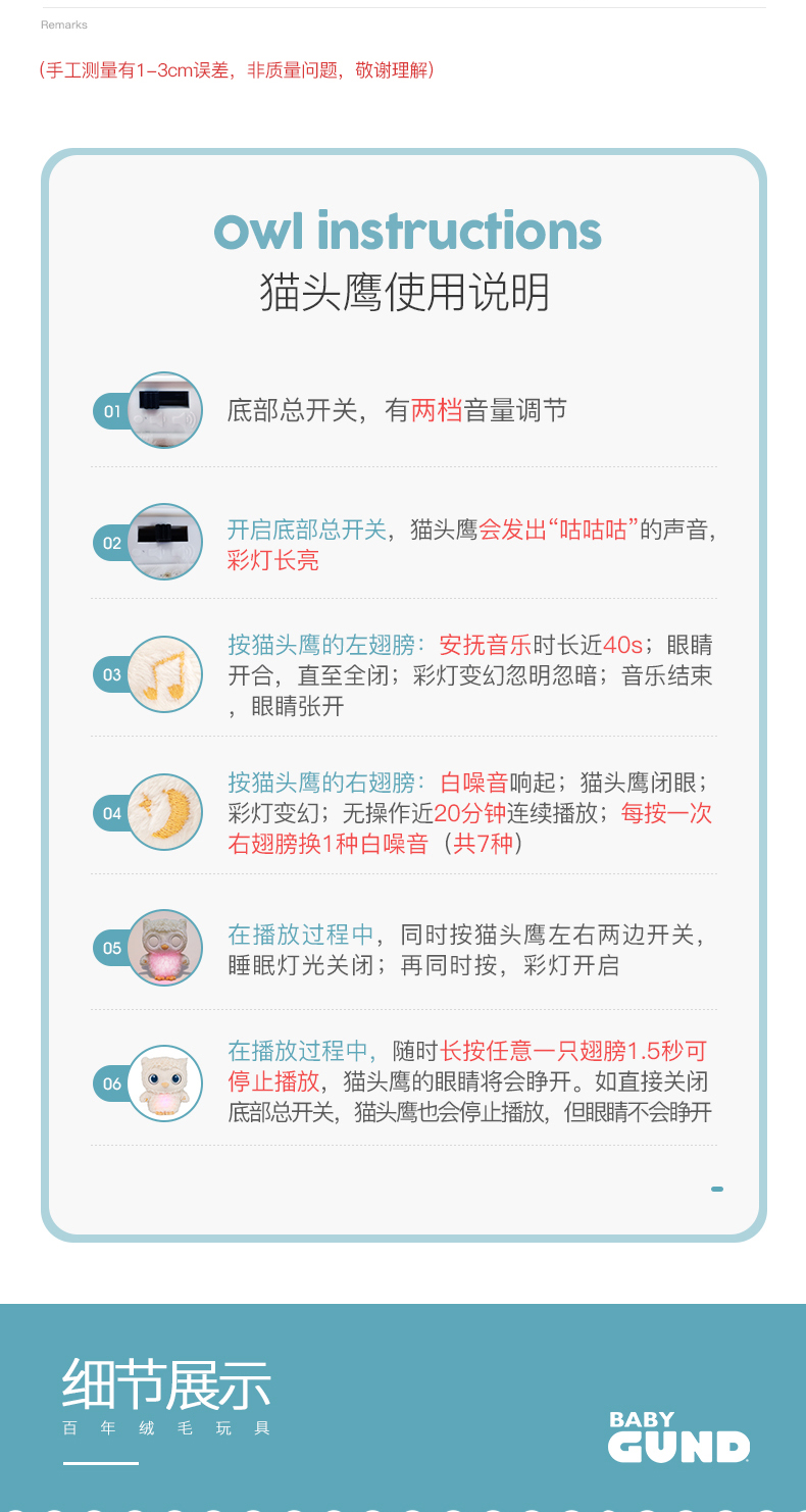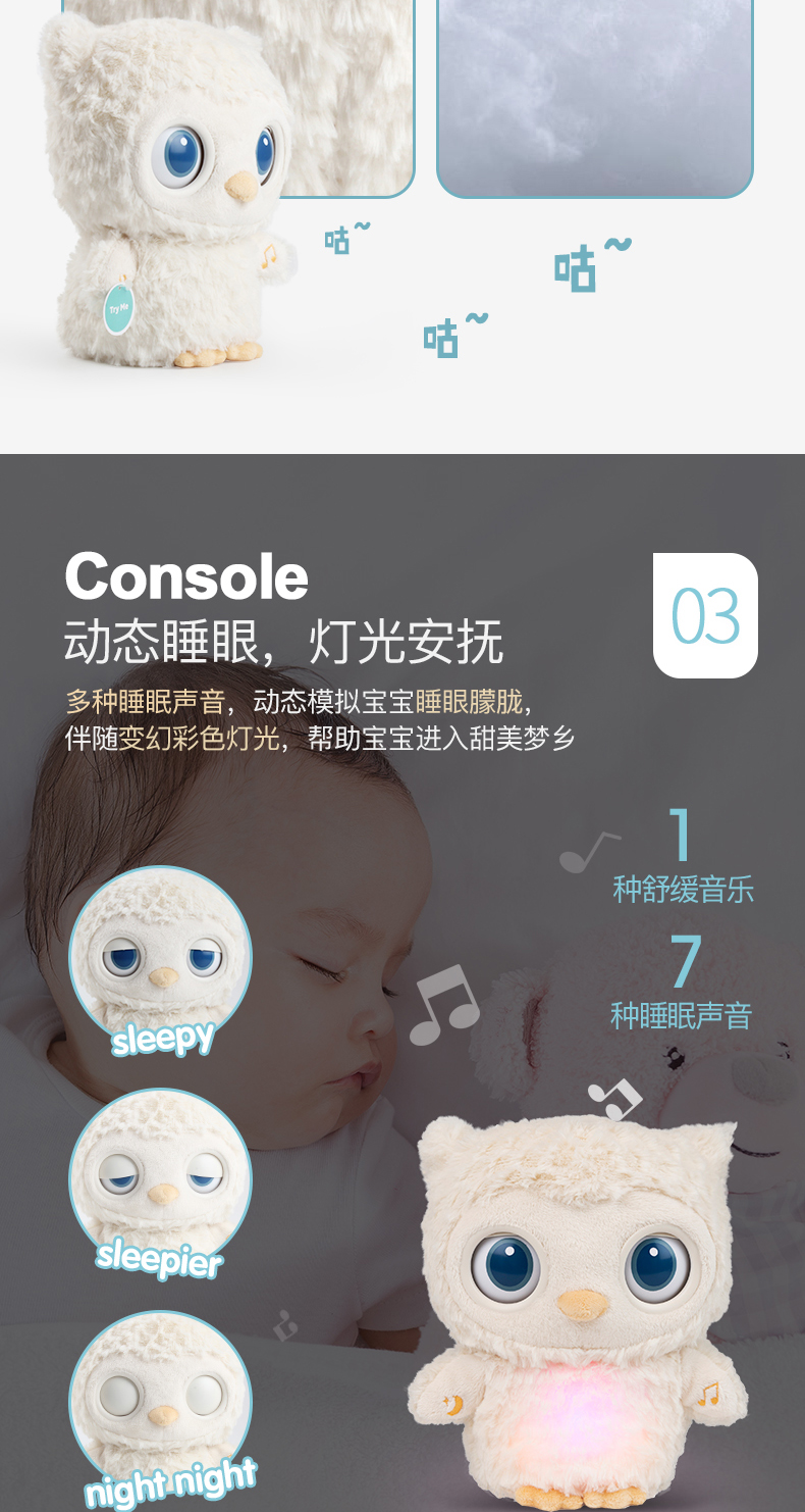 美国Baby Gund猫头鹰婴儿睡眠安抚毛绒玩偶 宝宝白噪音哄睡玩具