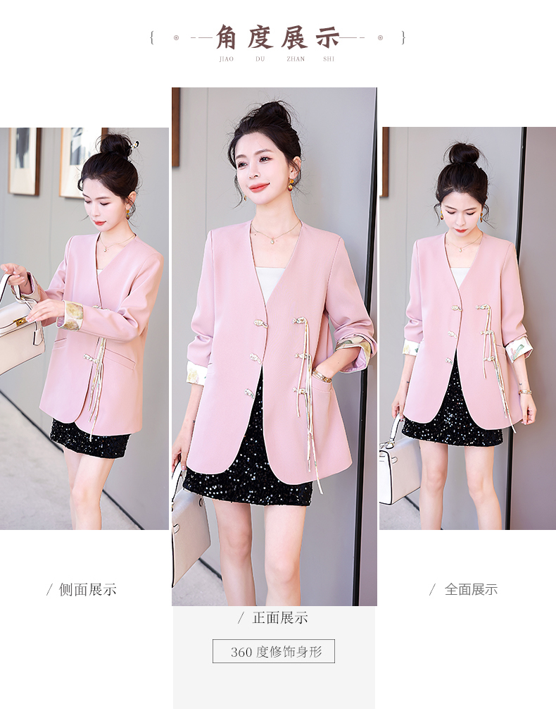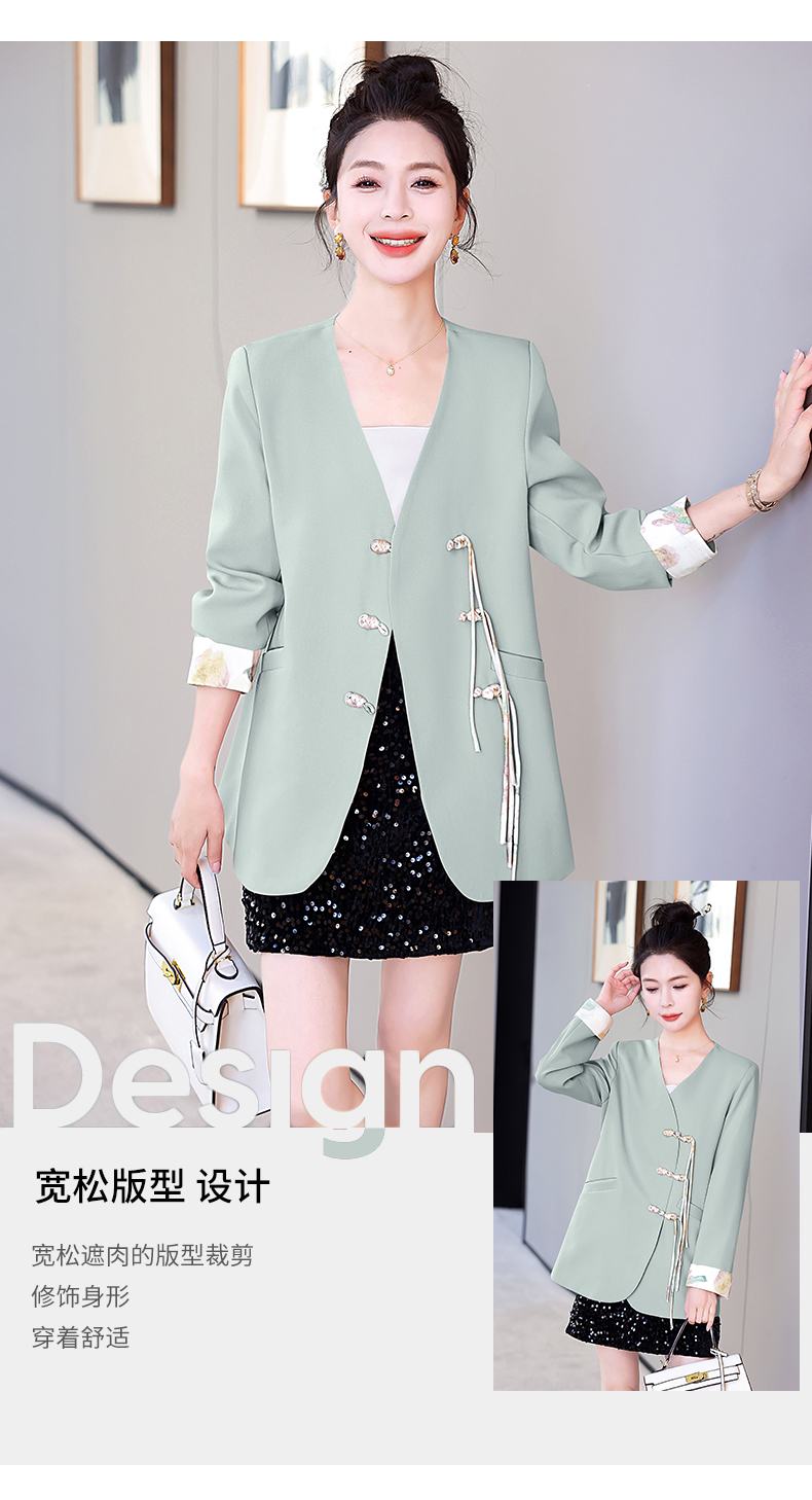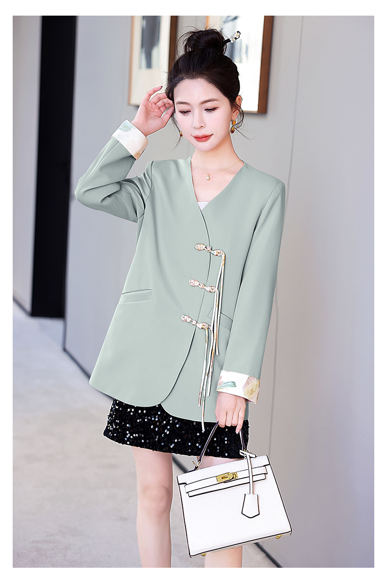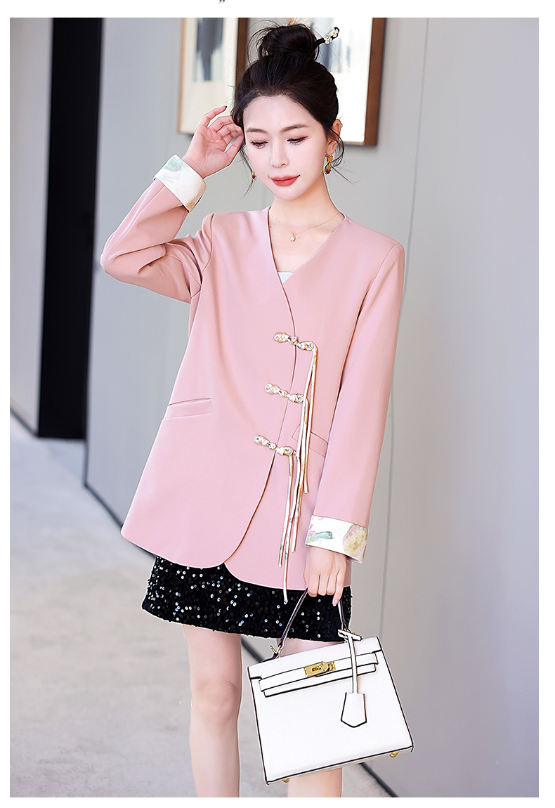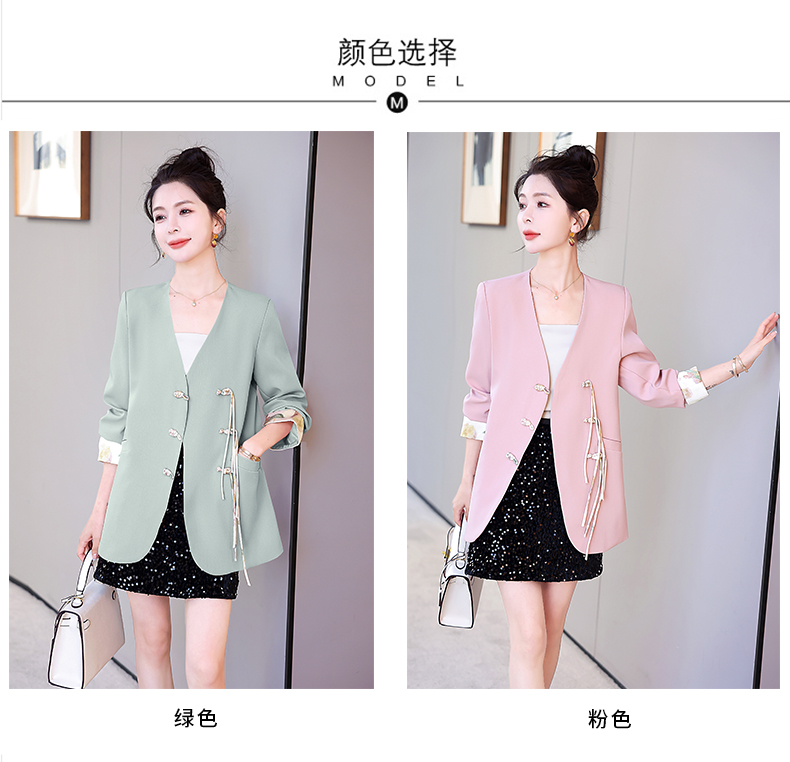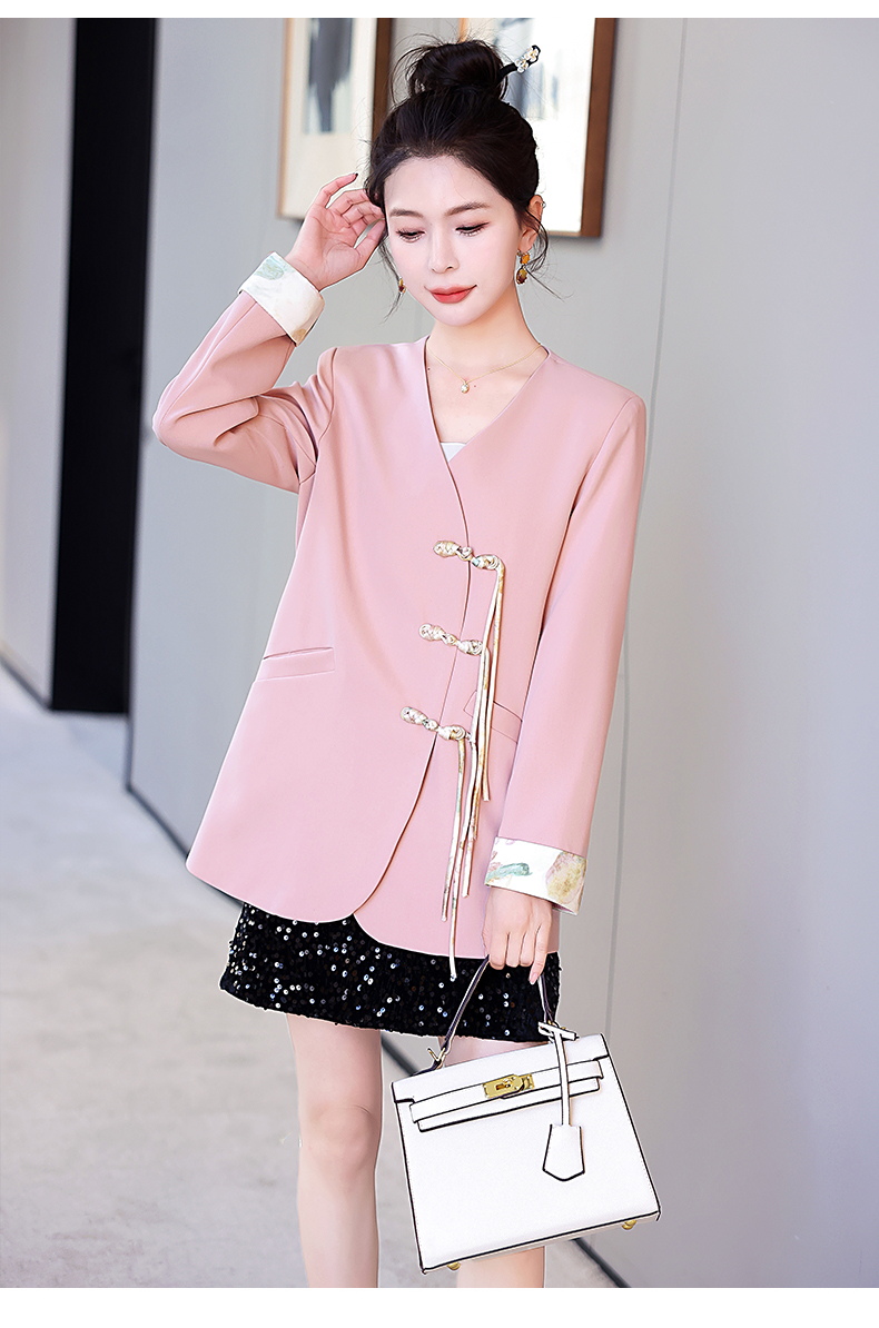 时尚复古,盘扣流苏V领拼接袖口外套HR-DMGY526