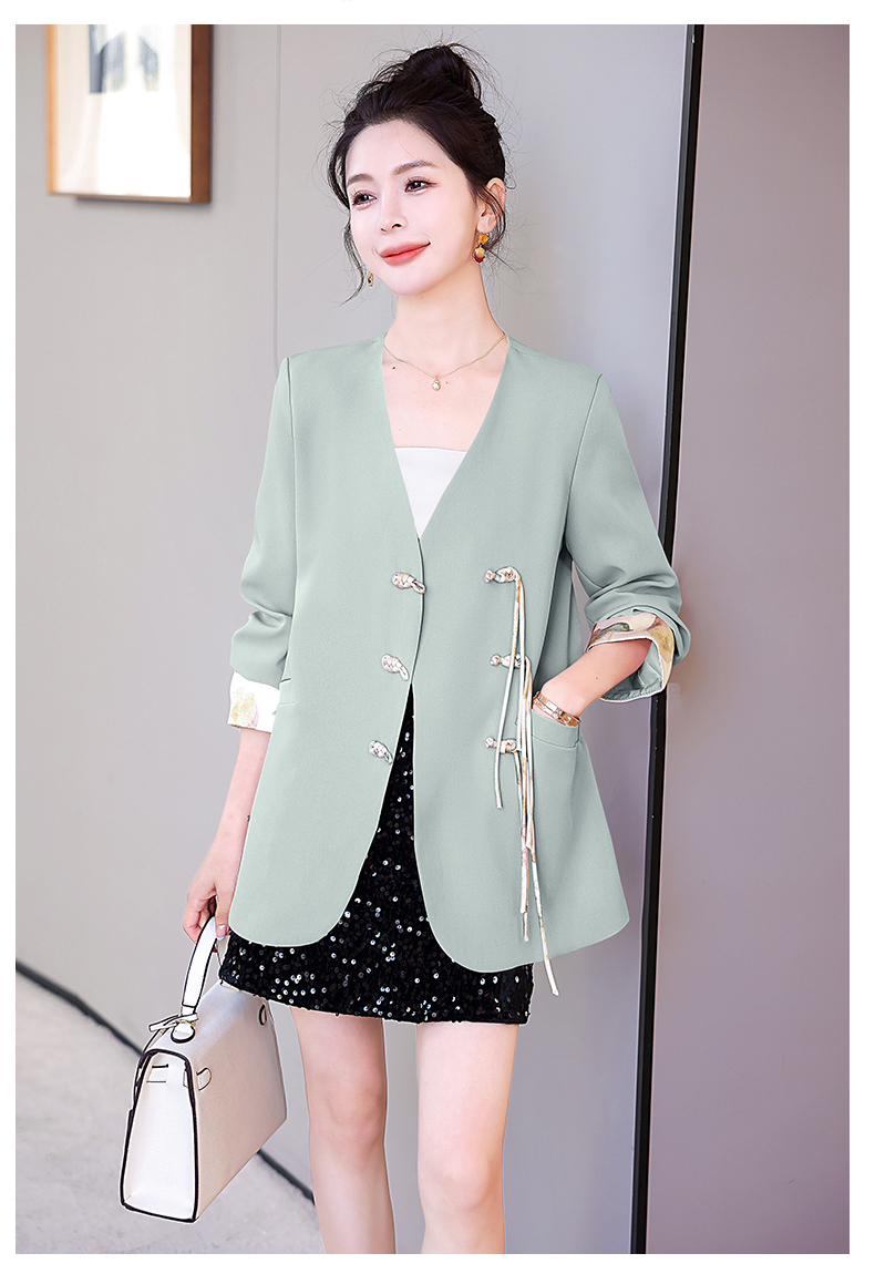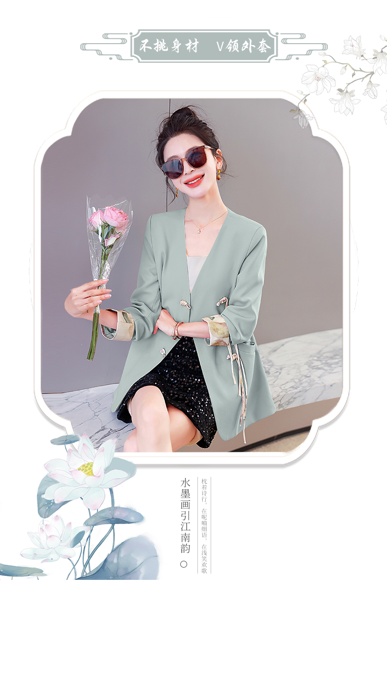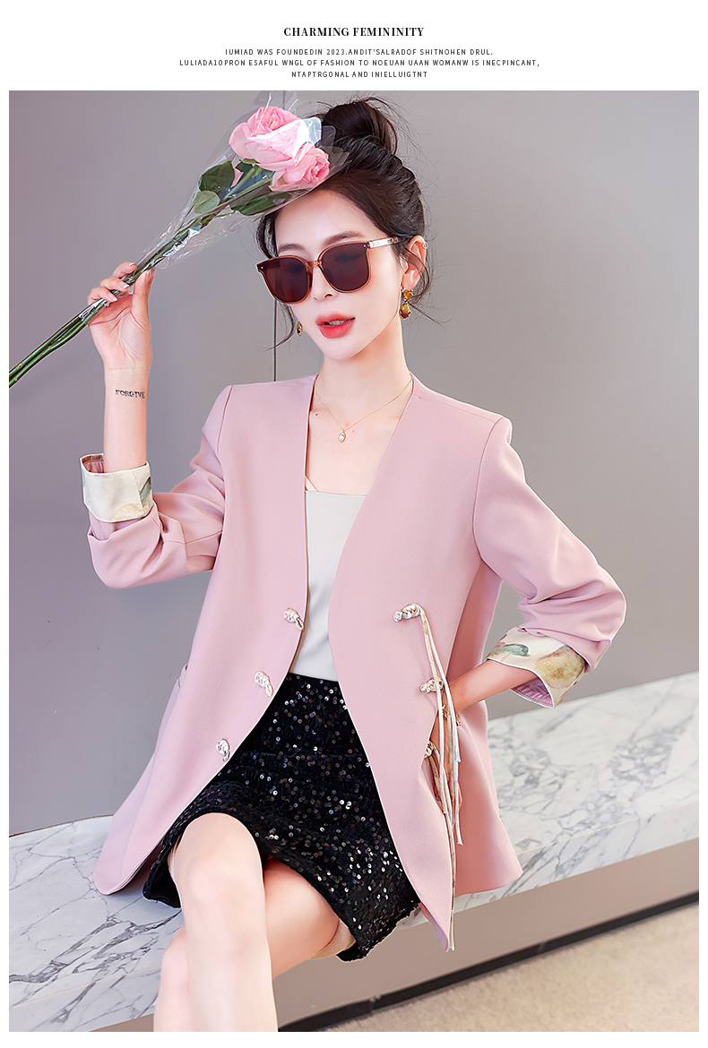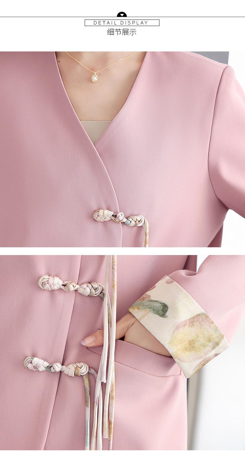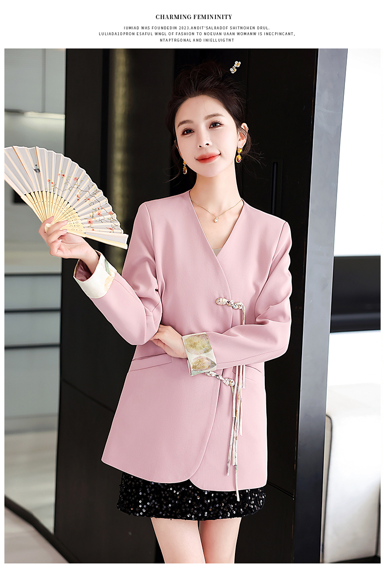 时尚复古,盘扣流苏V领拼接袖口外套HR-DMGY526